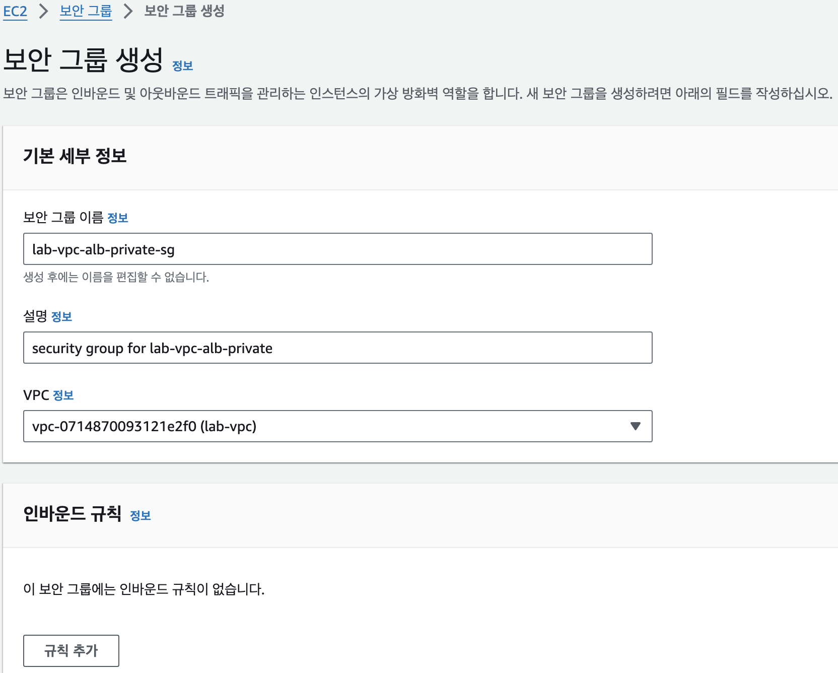 - 보안 그룹 생성 시 프로토콜과 포트 설정한 것