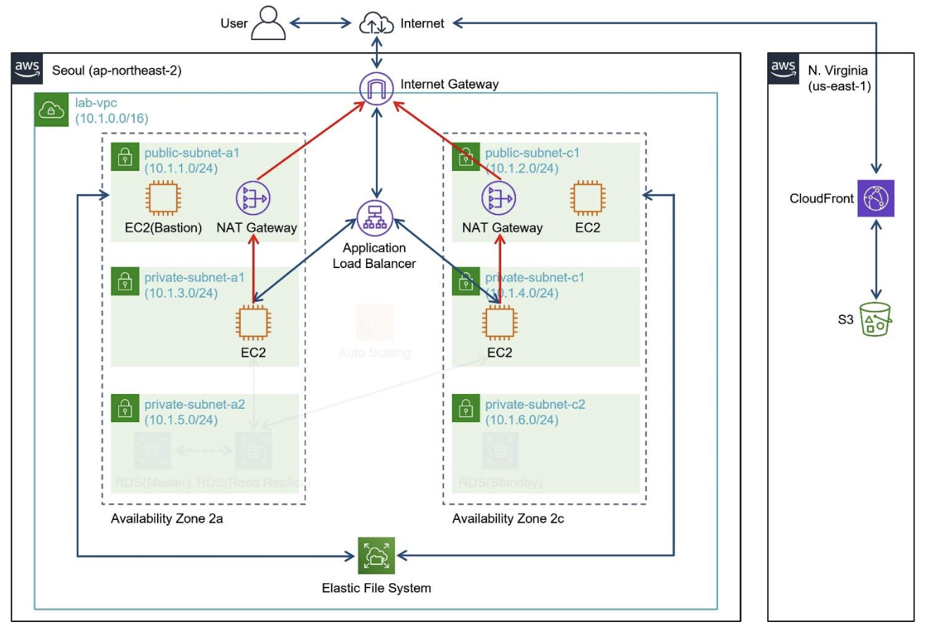외부와의 통신을 하기 위한 경로를 만들기 위해 NAT Gateway를 사용한다. (public subnet에 위치하여 private subnet의 통신이 가능하게 함