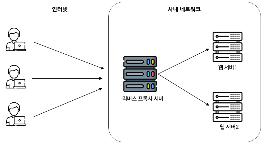 : 리λ²μ€ νλ‘μ μλ²λ μλ κ·Έλ¦Όμ²λΌ μΉ μλ² μμ λμ¬ μλ€. ν¬μλ νλ‘μ μλ²λ ν΄λΌμ΄μΈνΈ μμ λμ¬ μλ λ°λ©΄, 리λ²μ€ νλ‘μλ μΉ μλ² μμ λμ¬ μλ κ²μ΄λ€. 리λ²μ€ νλ‘μ μλ²λ₯Ό μ¬μ©νλ μ΄μ λ, λ³Έλ¬Έμ 'μΉ μλ²μ WASλ₯Ό ν¨κ» μ¬μ©νλ μ΄μ - μΉ μλ²μ μν 'μμ νμΈν μ μμ κ²μ΄λ€.
