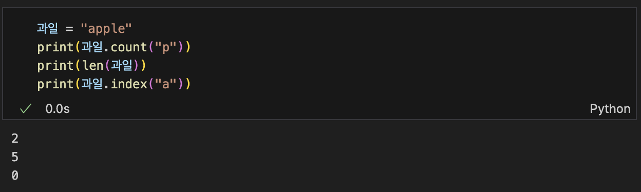 index("a") : a의 위치 보기 (인덱스는 0부터 시작)