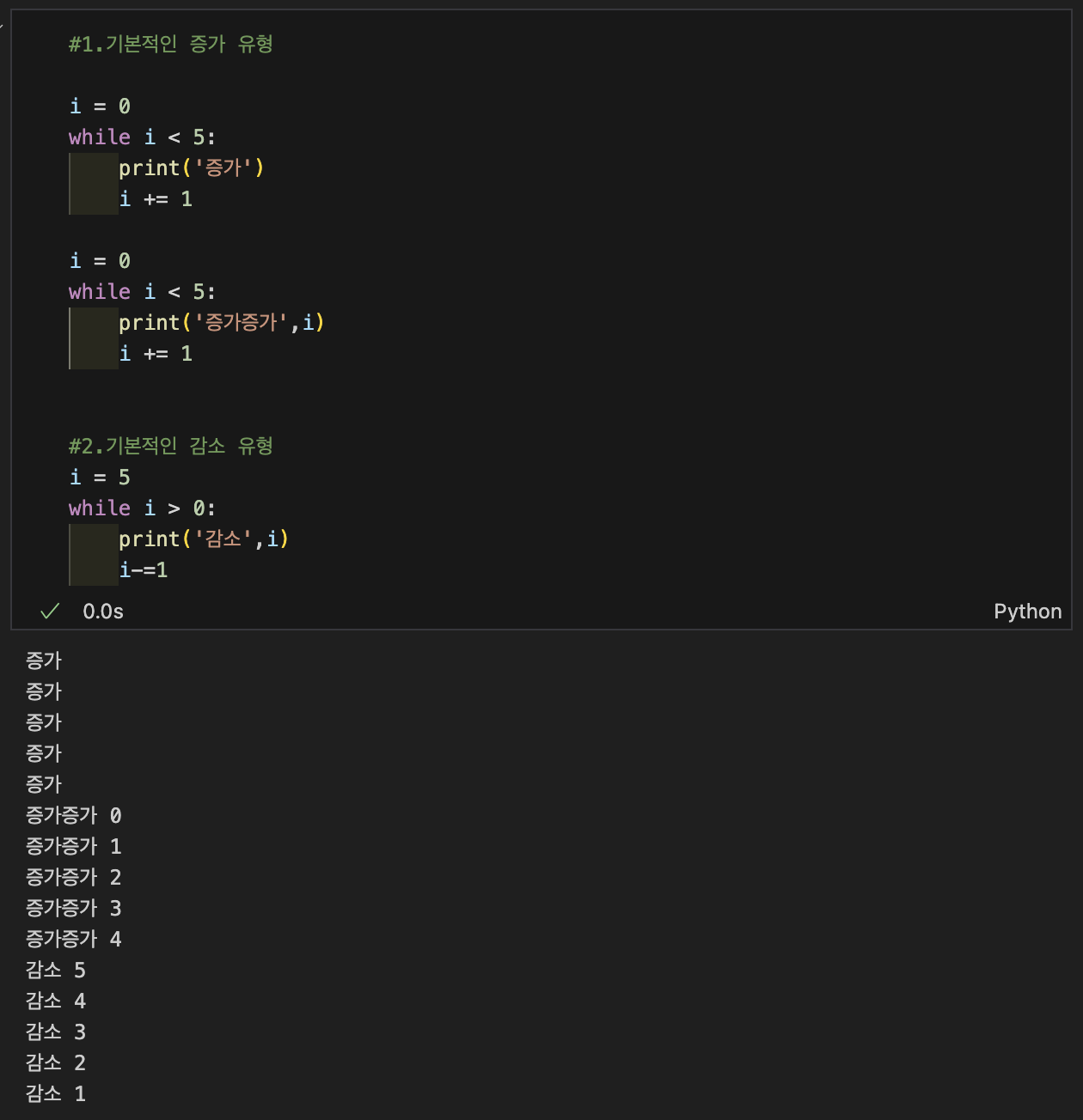 - i +=1 : 1씩 증가 / i -=1 : 1씩 감소