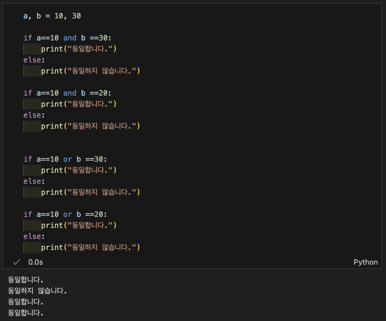 - and : 조건이 두개일 경우 둘다 성립해야 성립