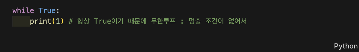 - 멈출 조건이 없어서 항상 True이기 때문에 무한루프에 빠짐