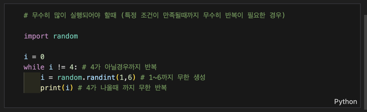 - 특정 조건이 만족될때까지 무수한 반복이 필요한 경우 유용하게 사용할 수 있음