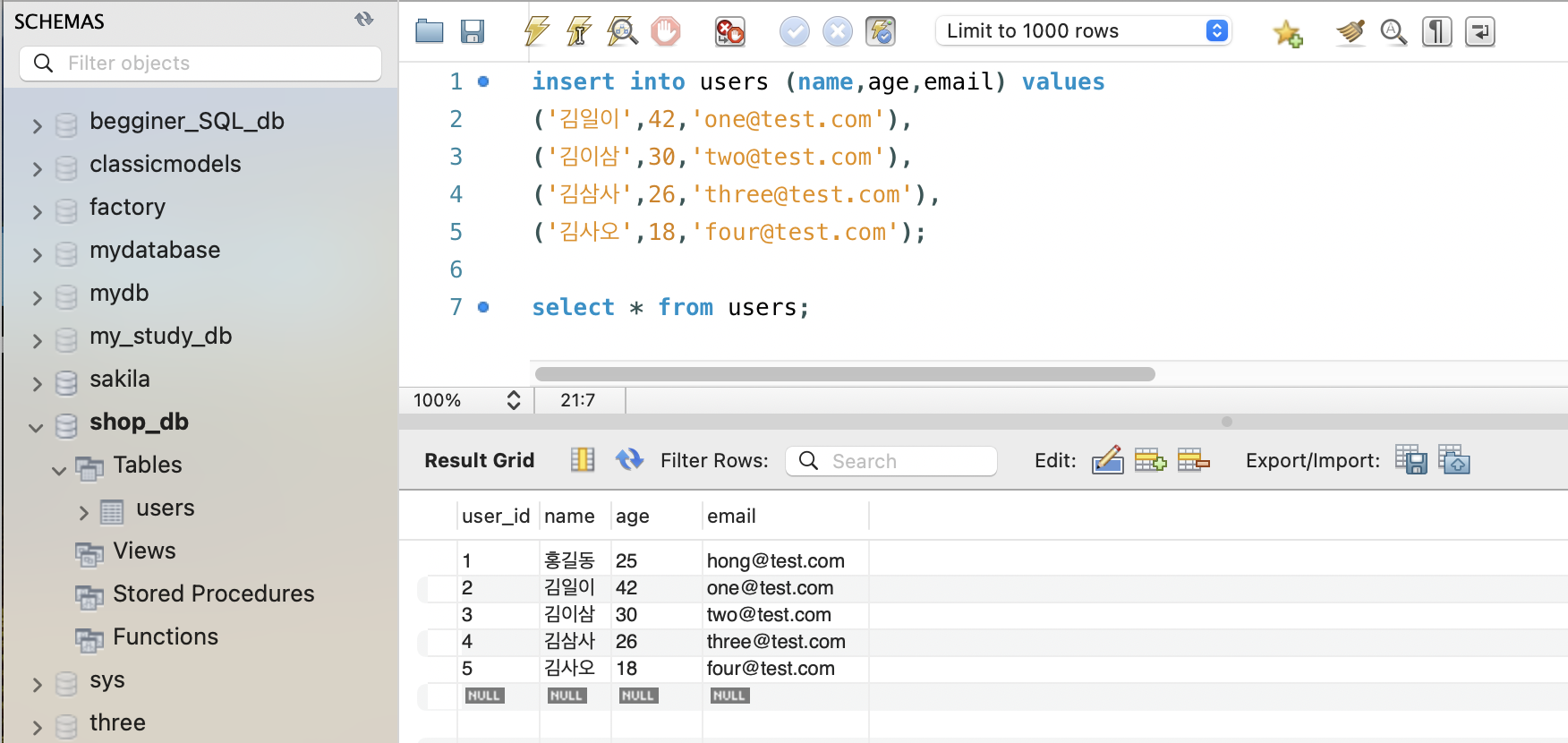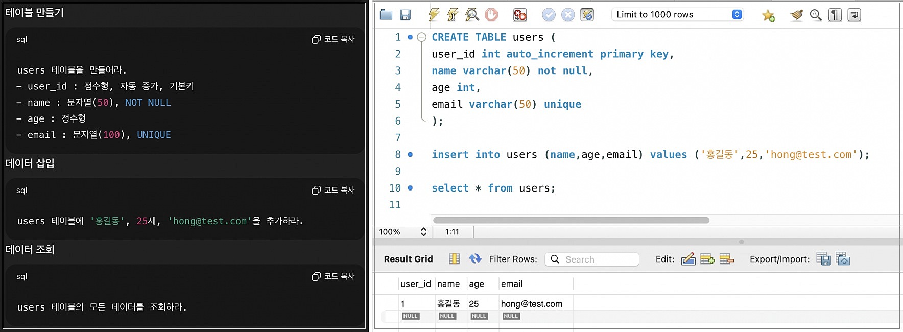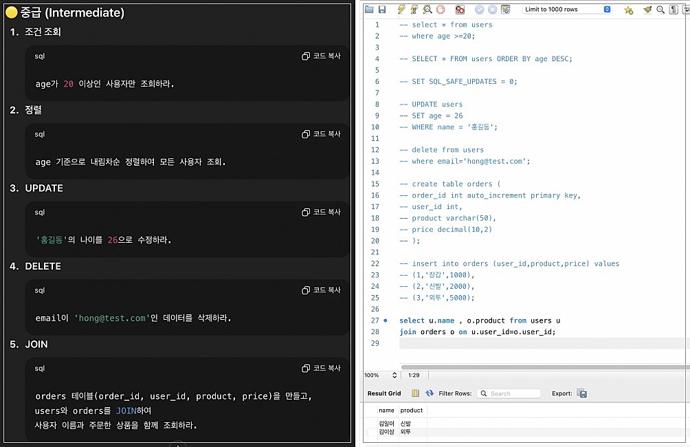 - Workbench에는 Safe Update mode 가 기본 켜져 있어서, PRIMARY KEY 조건 없는 UPDATE는 막힐 수 있습니다