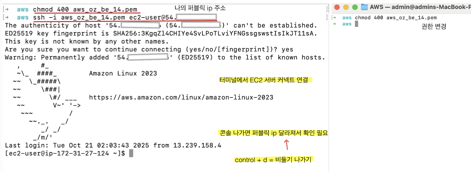 aws_oz_be_14.pem : 키패스인가 그거 임(인스턴스 생성시에 만든 것)