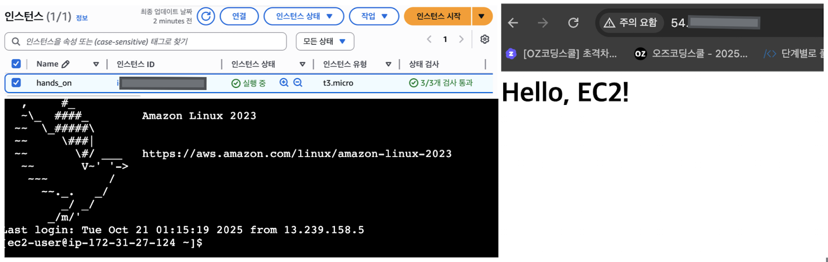 이제는 인스턴스를 실행만 해주면 퍼블릭 아이피 연결까지 잘 된다.