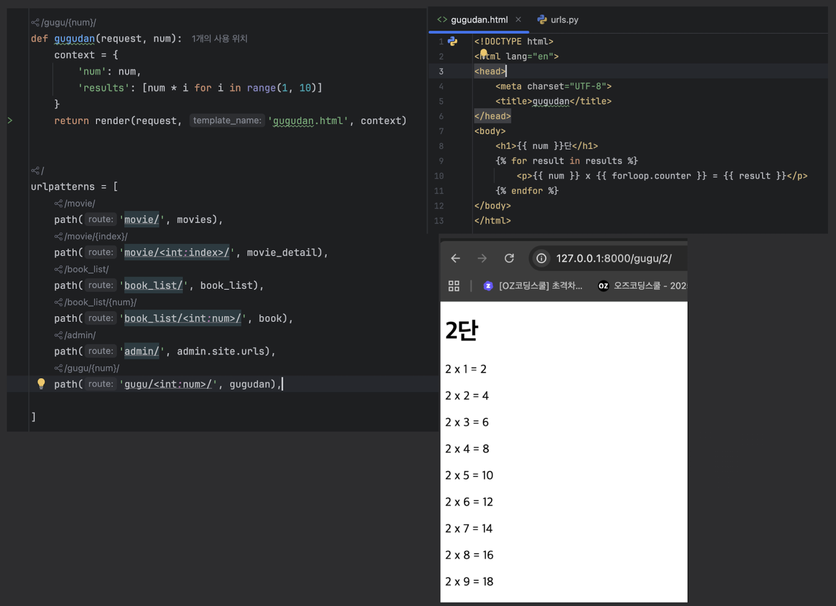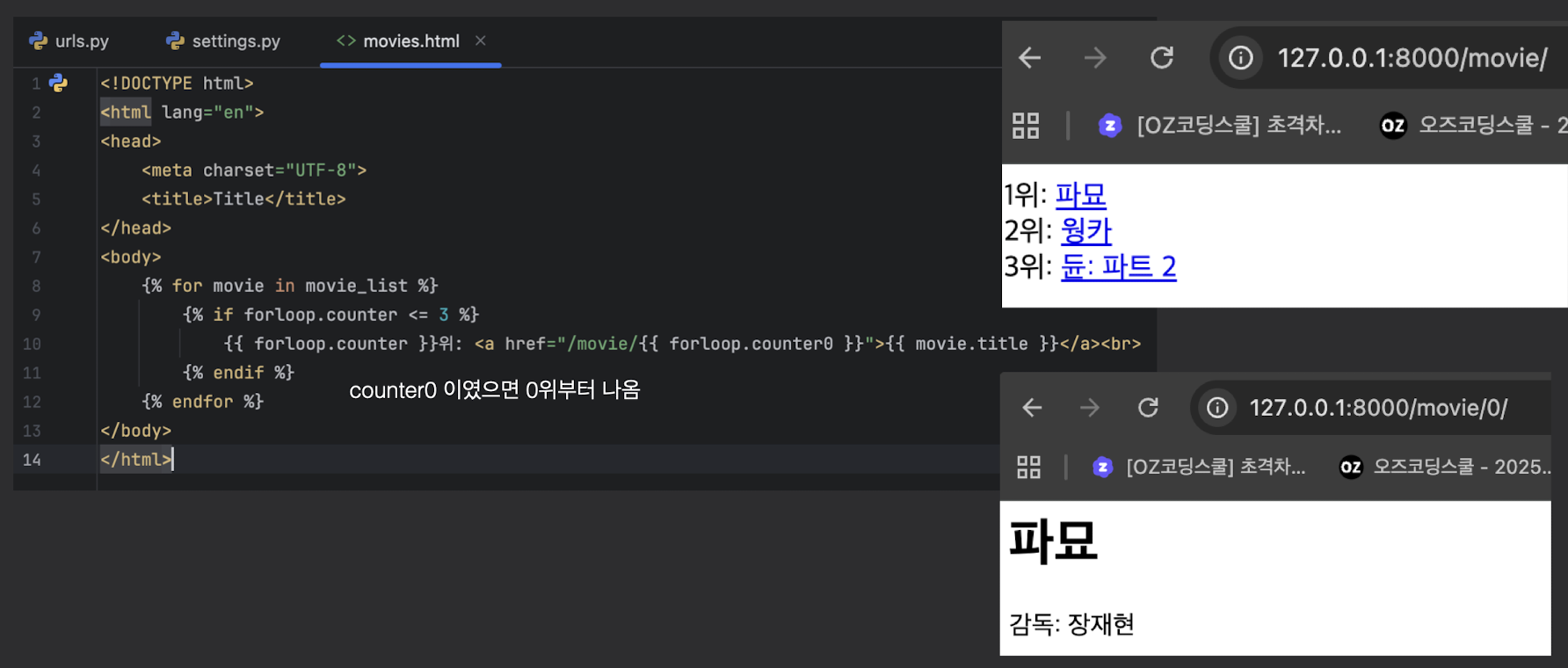 - forloop.counter : 1부터 시작해서 반복 횟수를 세어주는 Django 템플릿 변수