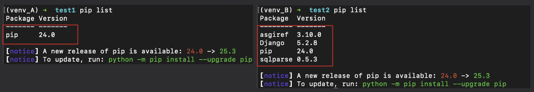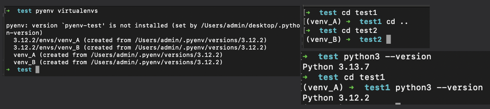 - pyenv virtualenv 3.12.2 venv_A / pyenv virtualenv 3.12.2 venv_B