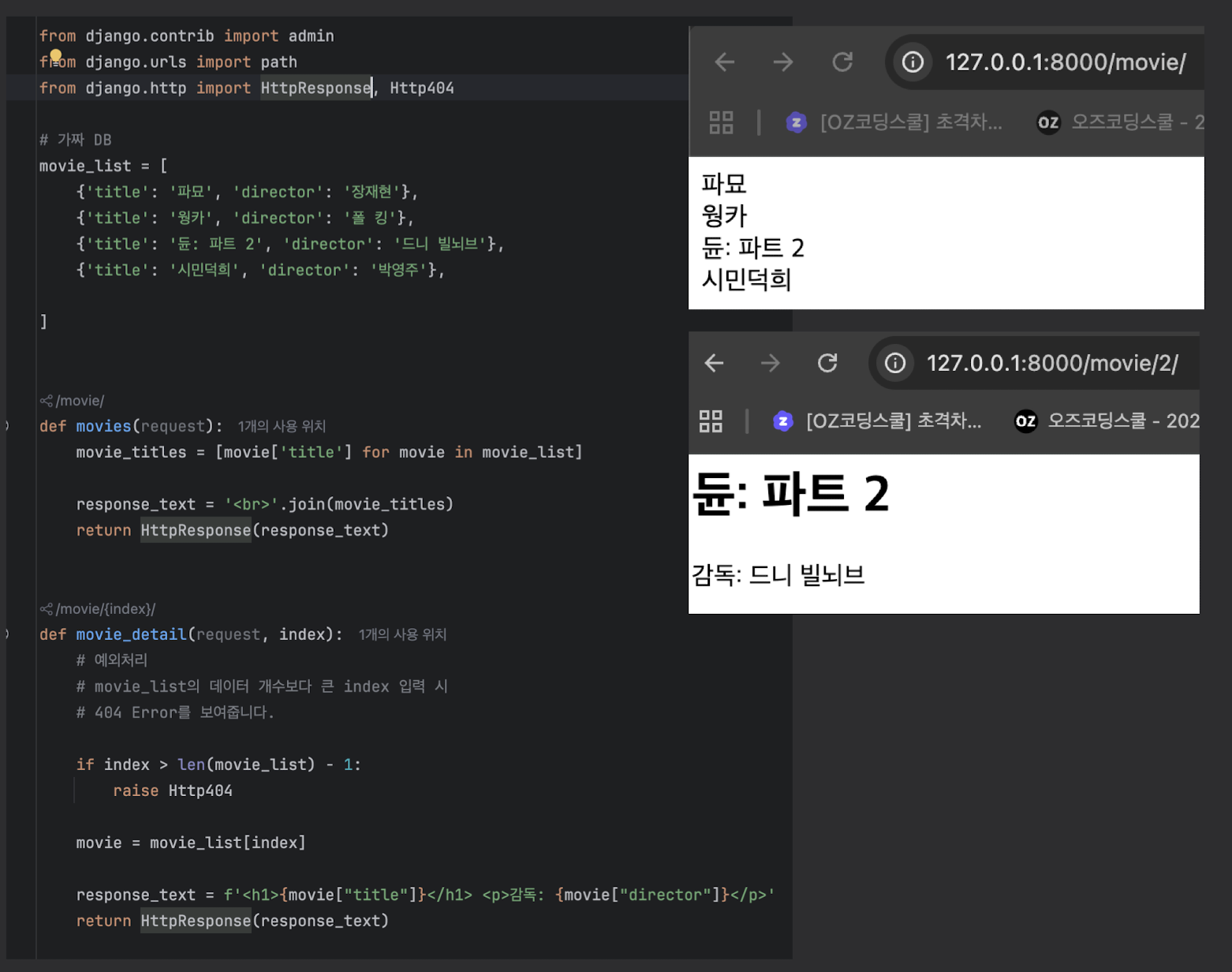 - Flask, FastAPI는 패키지 설치 많이 필요한데 Django는 기본 제공 많음