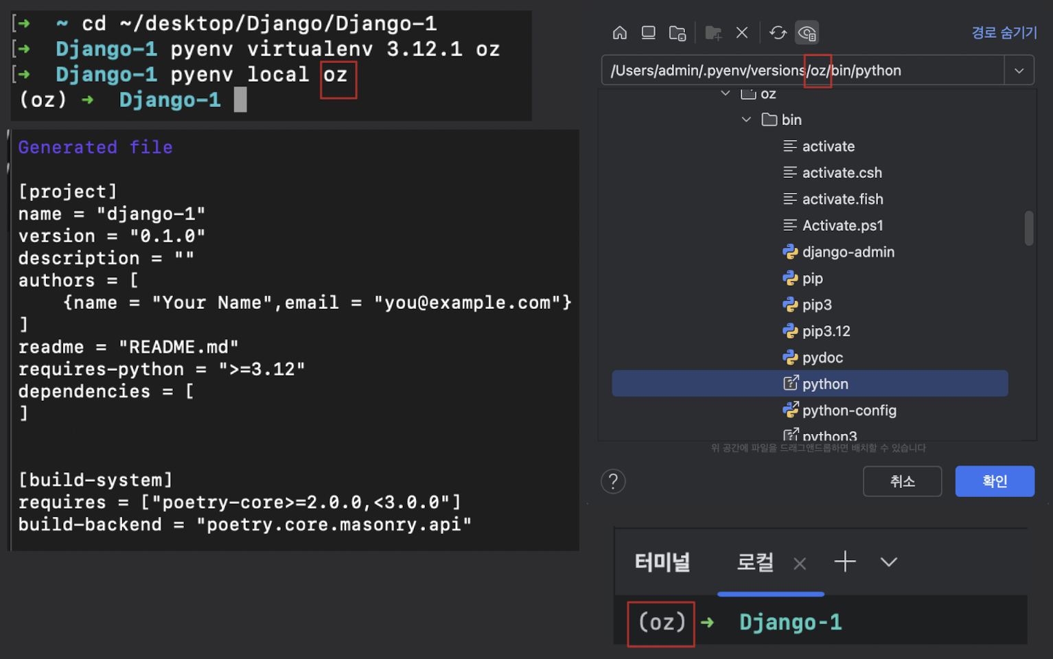 - pyenv를 설치하면서 가상환경 설정을 했는데 분명 3.12.2로 설정했는데