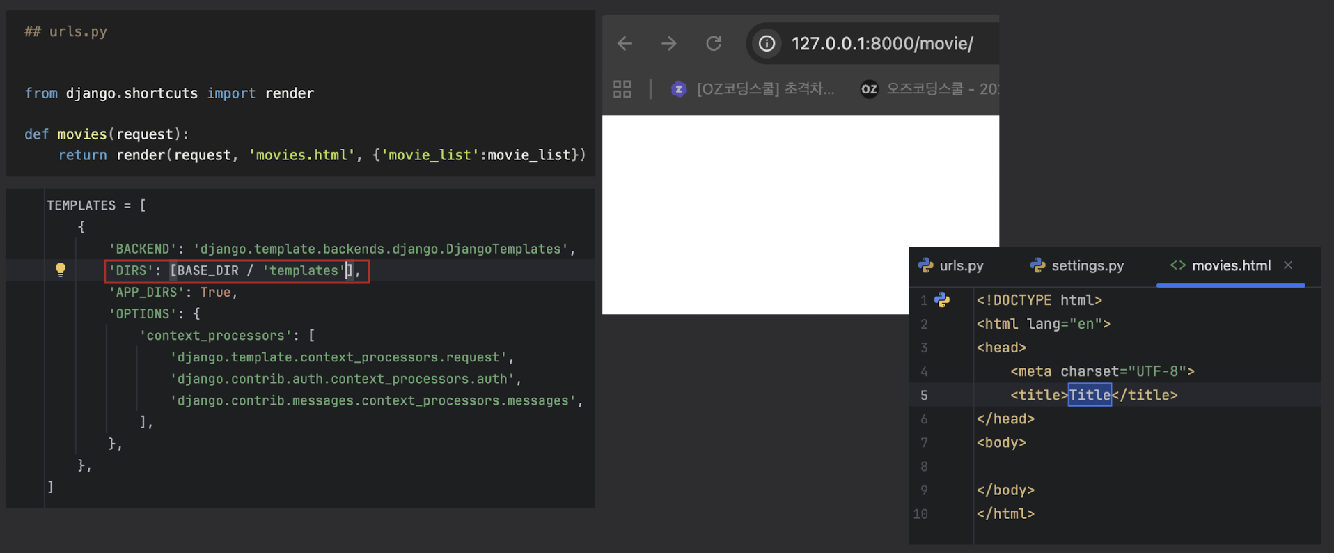 - 아직 movies.html에 아무것도 추가하지 않아서 텅텅