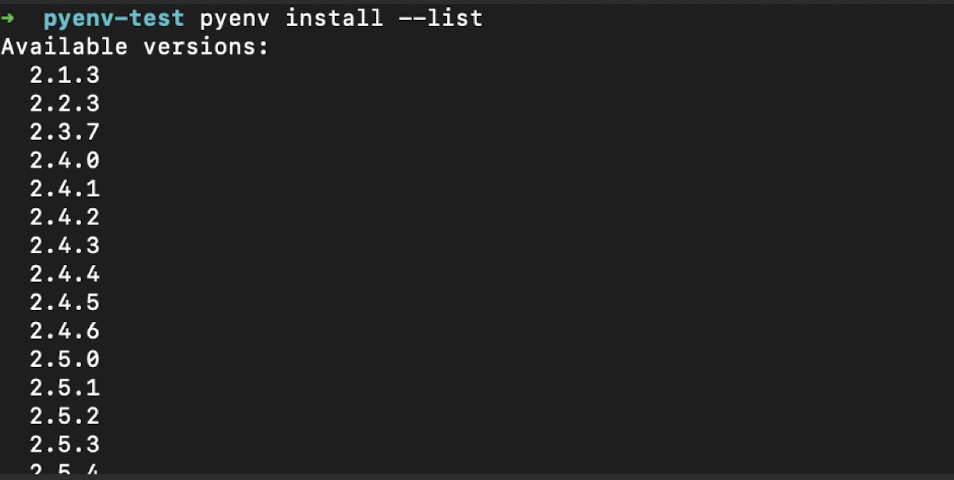 - pyenv install --list 또는 pyenv install 원하는 버전 명령어로 설치 가능한 버전 확인