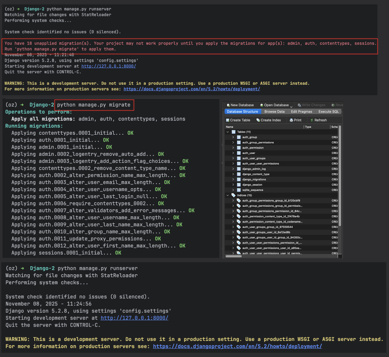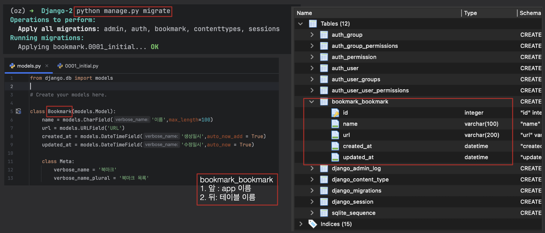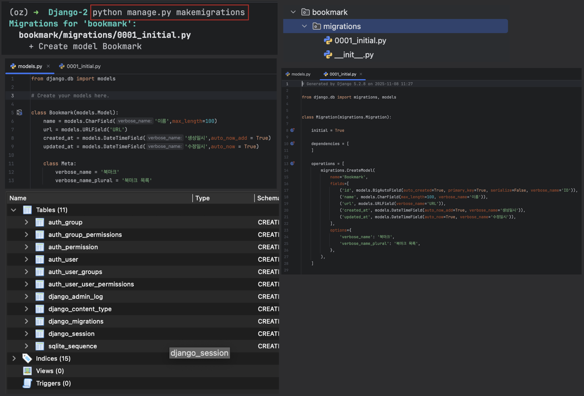 python manage.py makemigrationsmigrations.py 파일을 만듬migrate