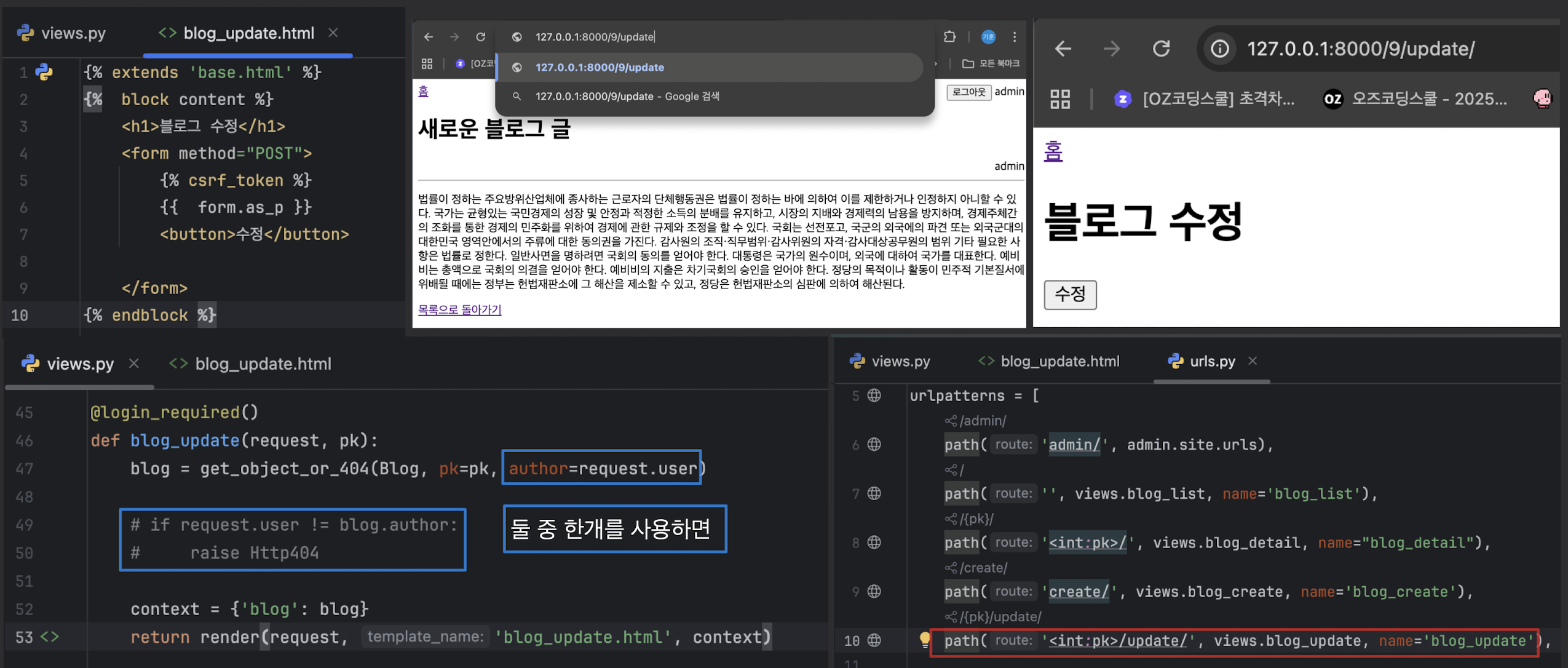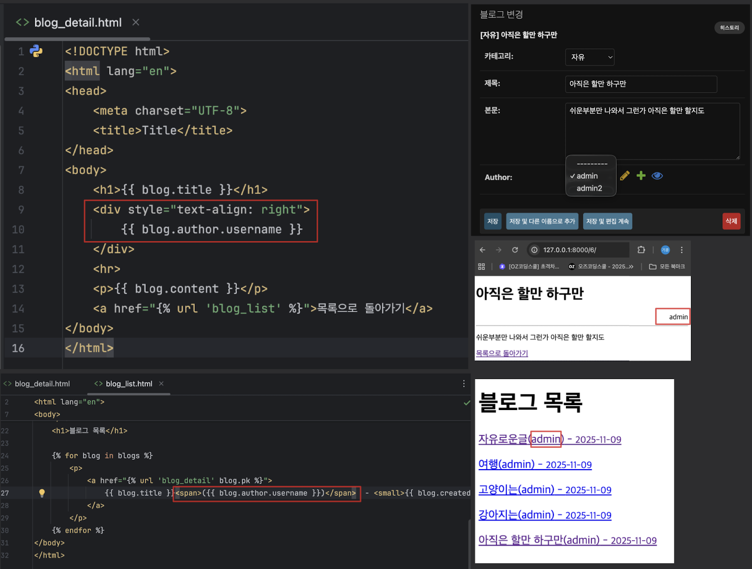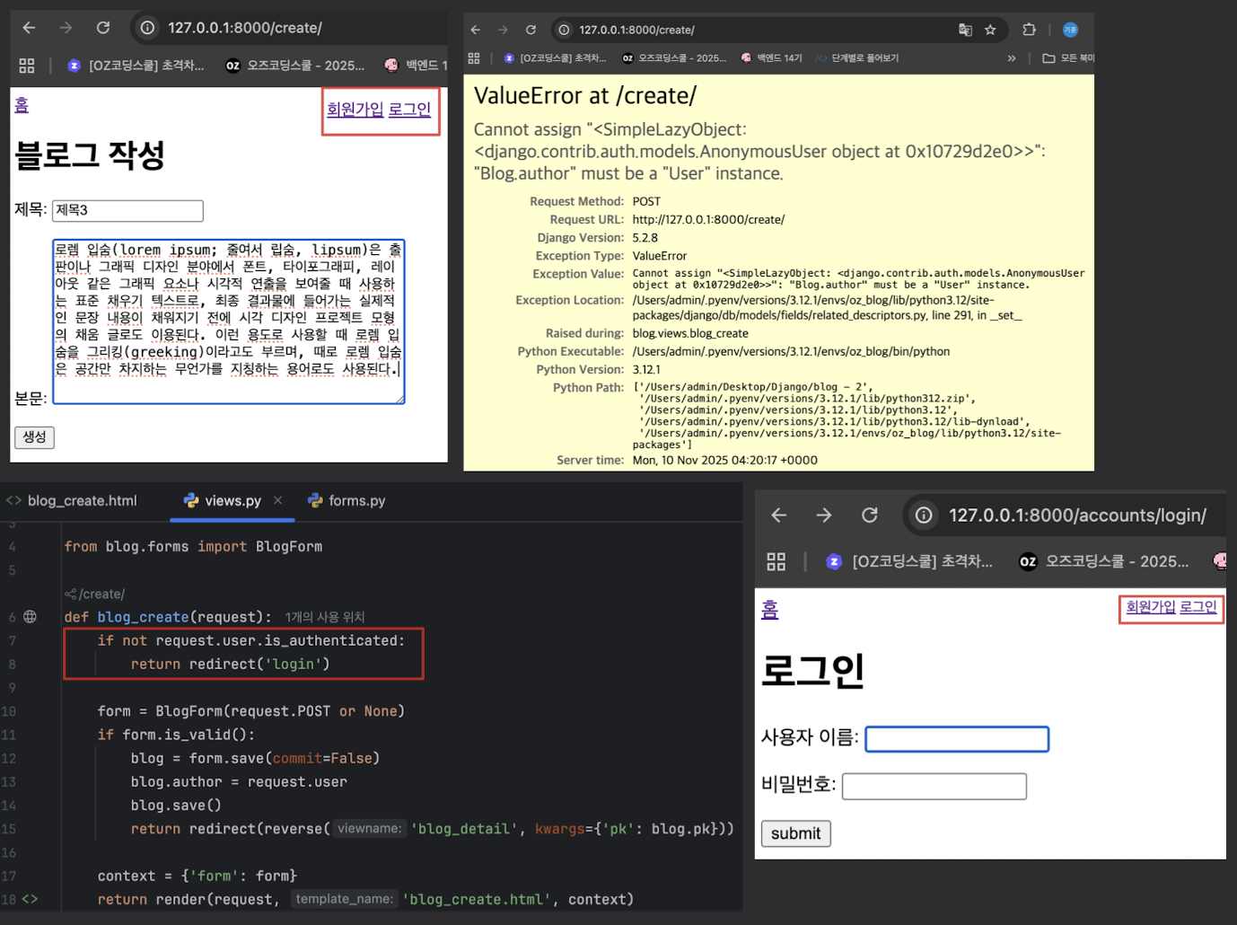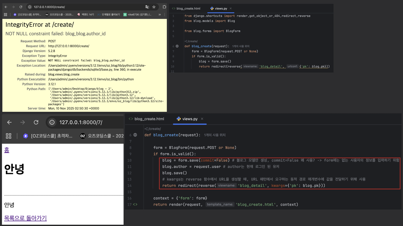 - 이유: blog = form.save() (Blog 모델의 author 필드가 NOT NULL)