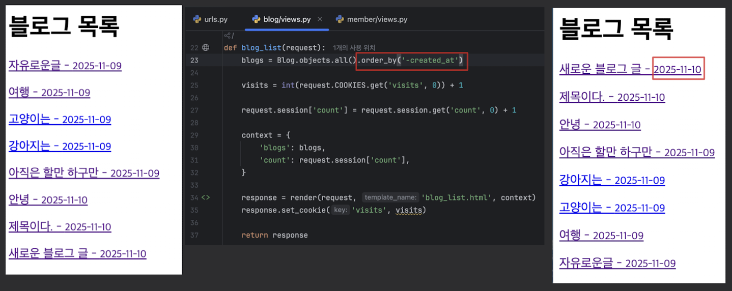 최근 글이 가장 위로 올라오도록 코드를 수정