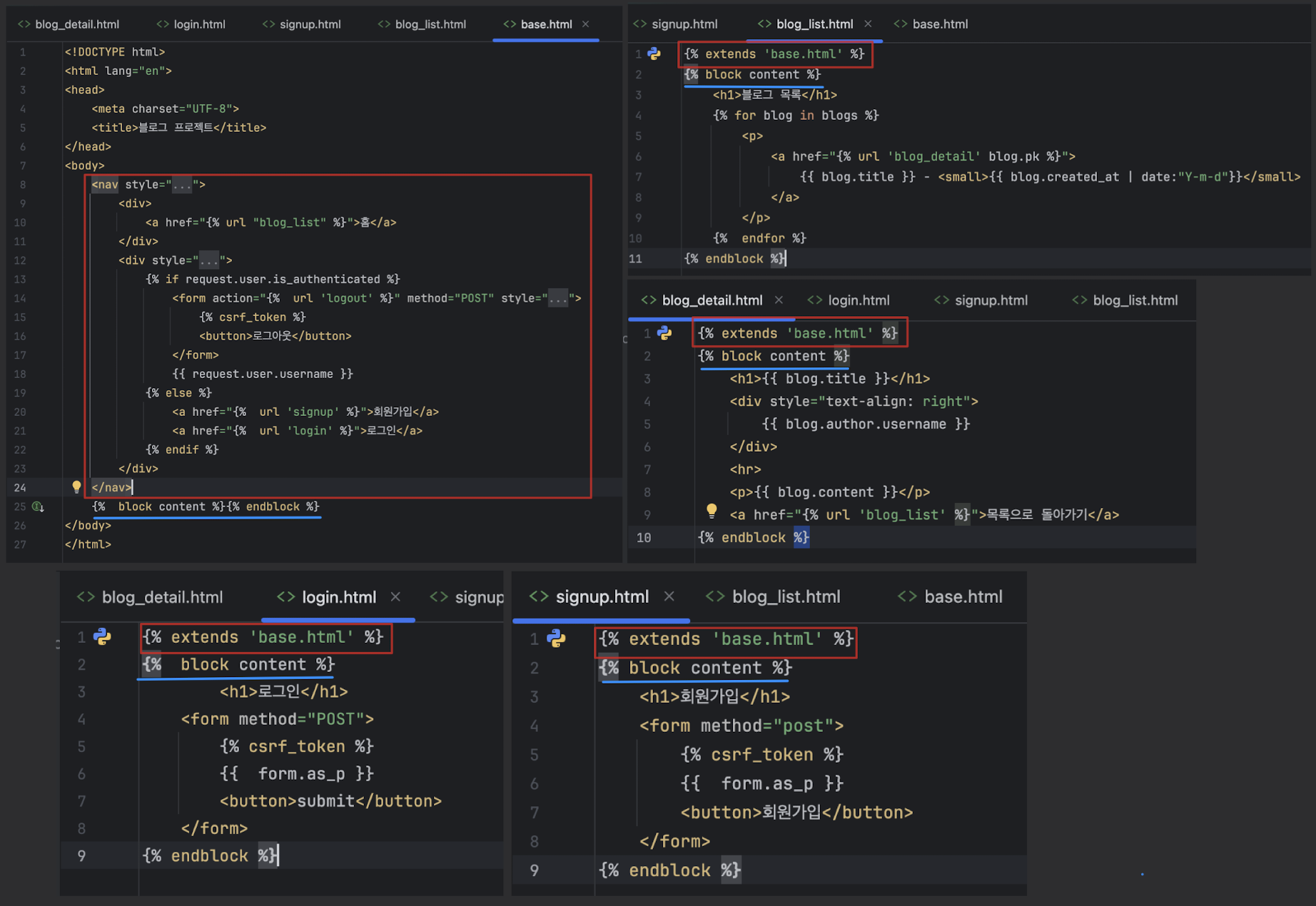 Base.html로 템플릿 extends 시키기