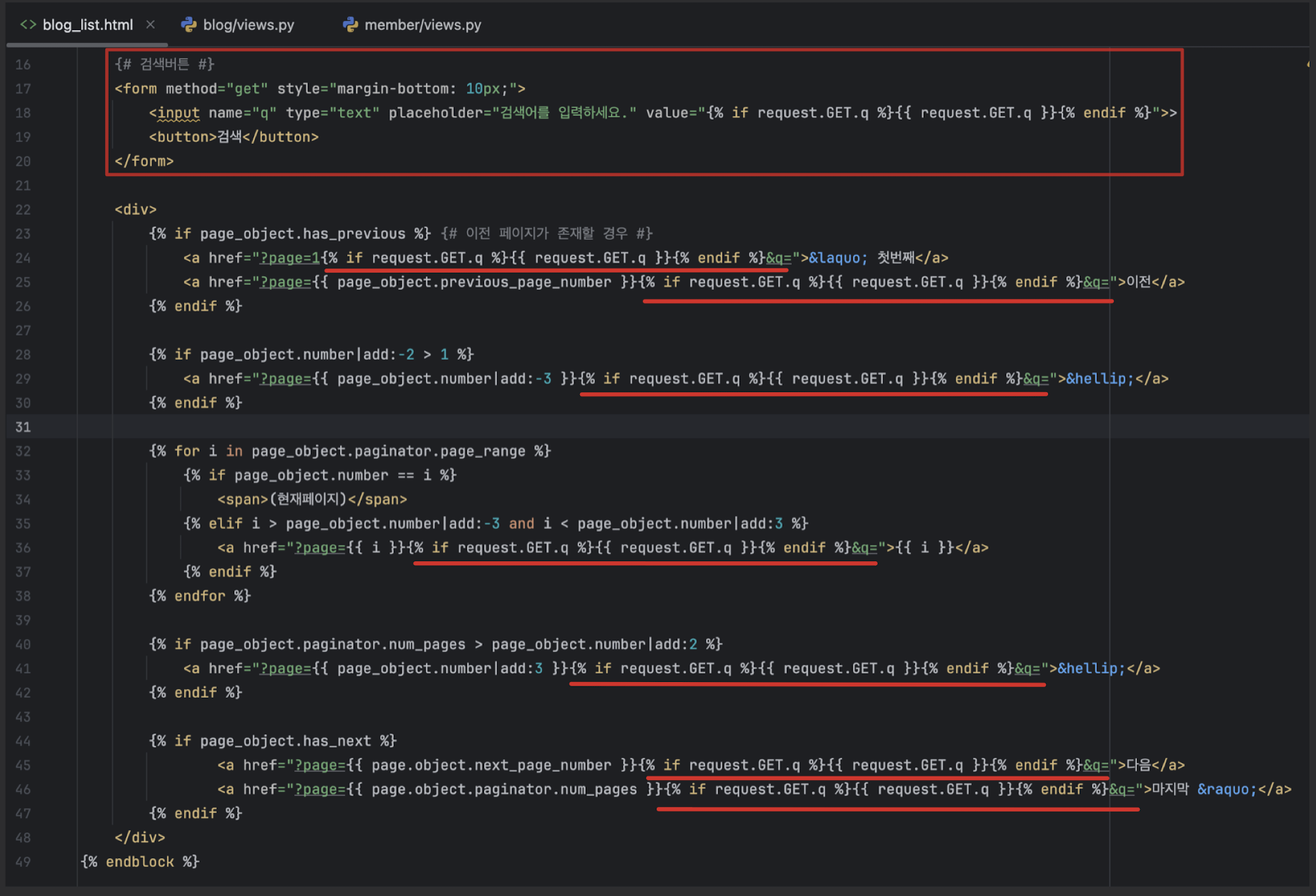 - True면 아래 저장 로직이 실행, 아니면 마지막의 return render(...)로 다시 폼을 보여줌