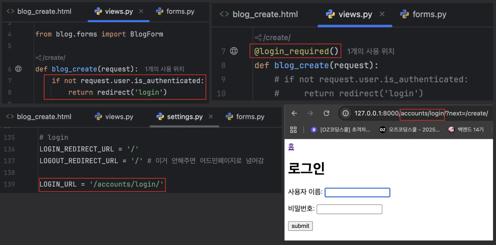 http://127.0.0.1:8000/login/?next=/create/ | '?' 뒤에있는 next를 받는 것