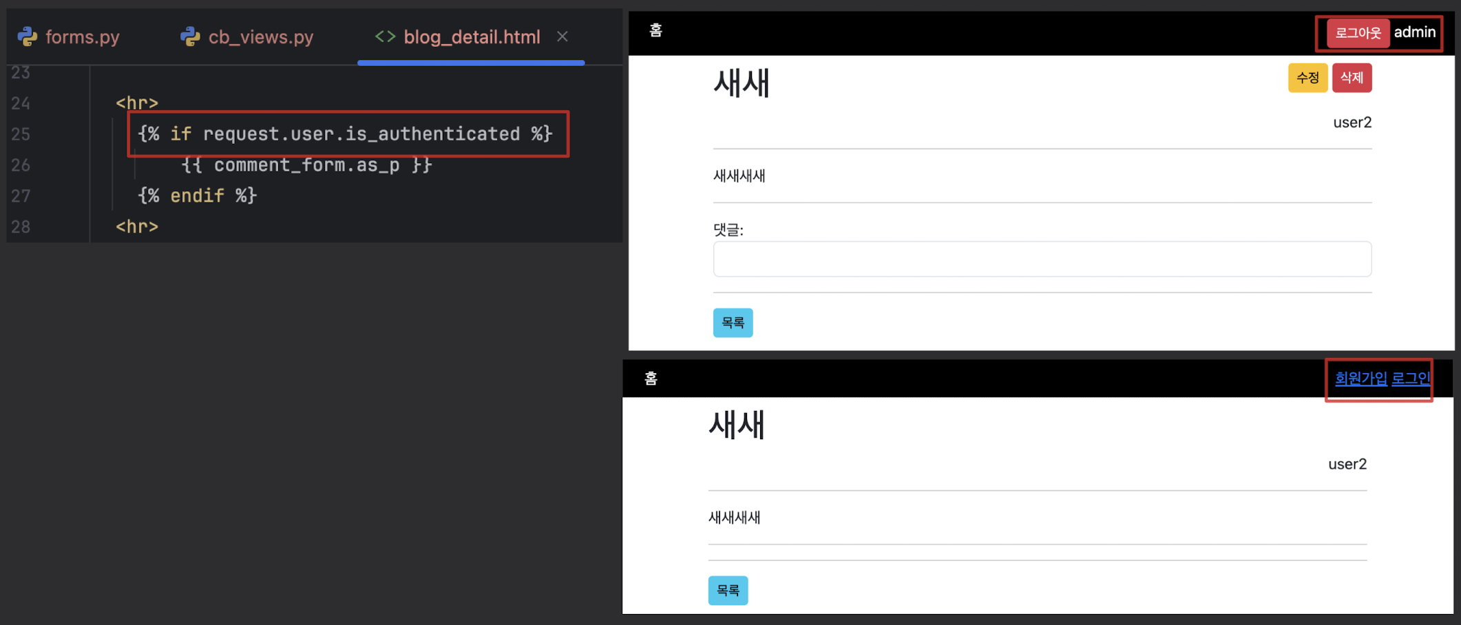 - 로그인이 되어있지 않다면 댓글을 작성할 수 없도록