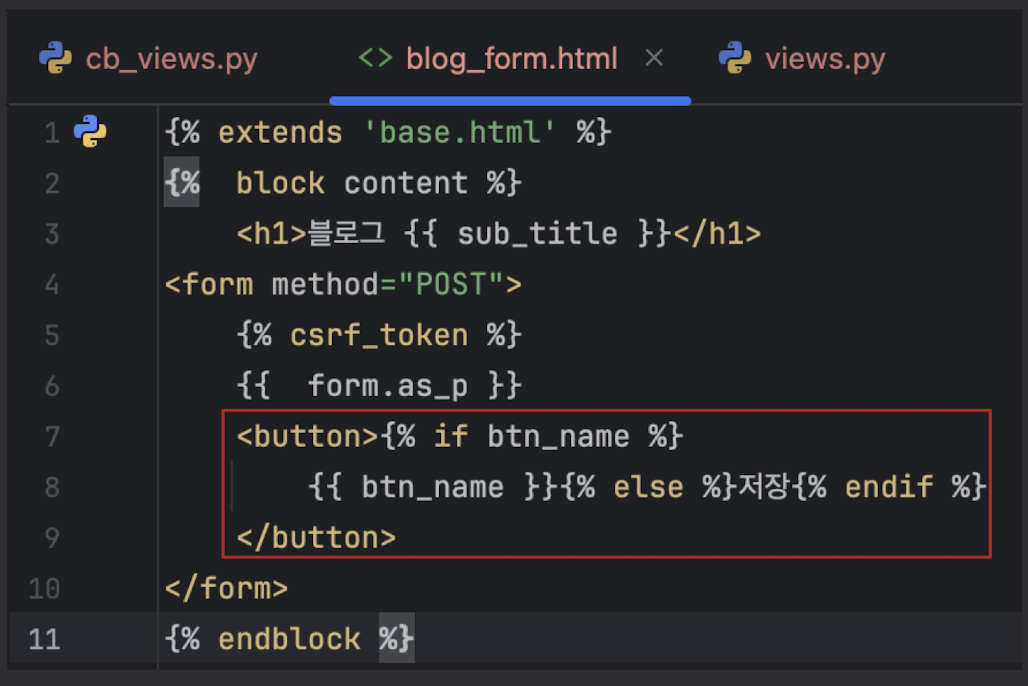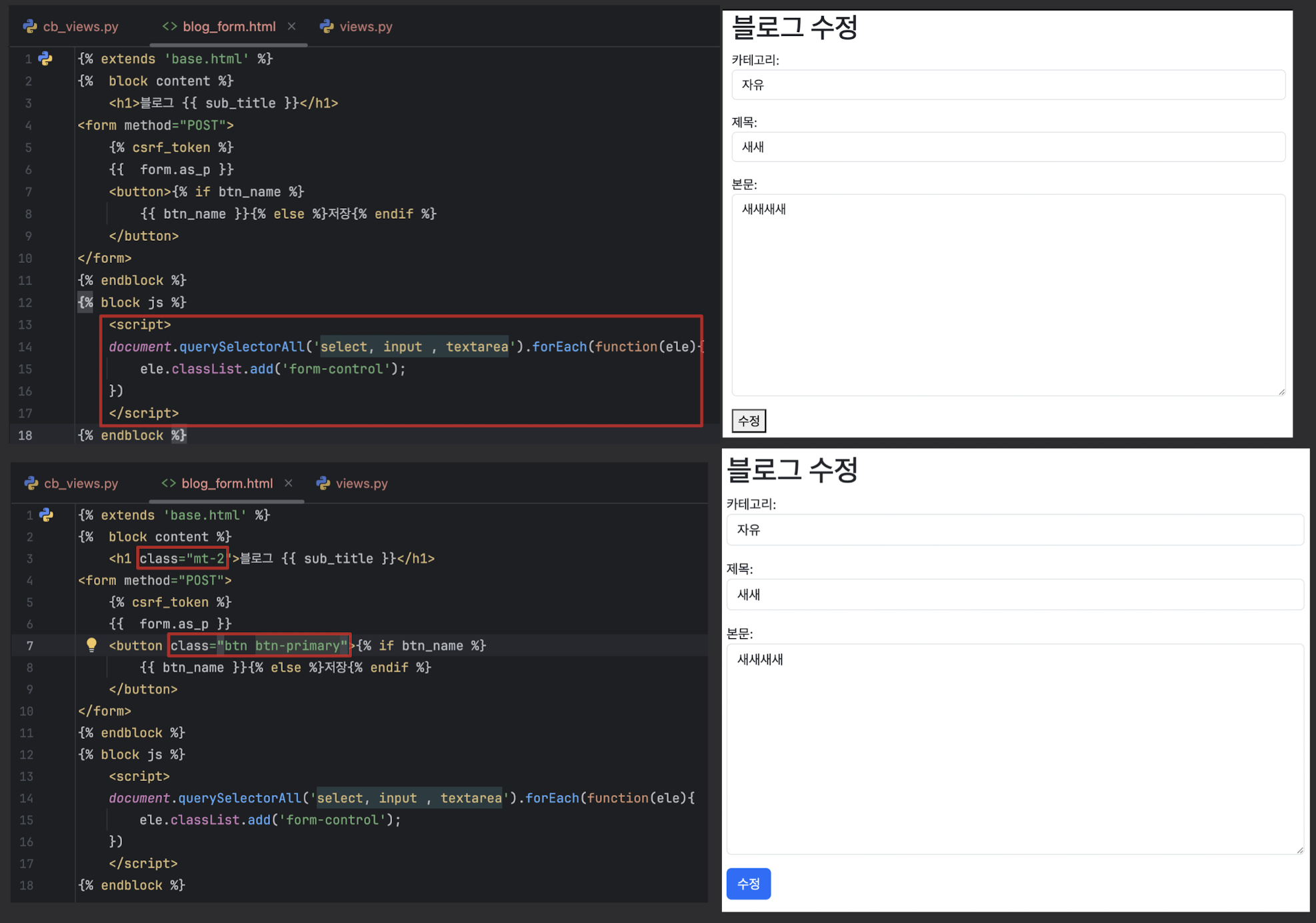 - blog_create.html 과 blog_update.html 을 하나로 합치기