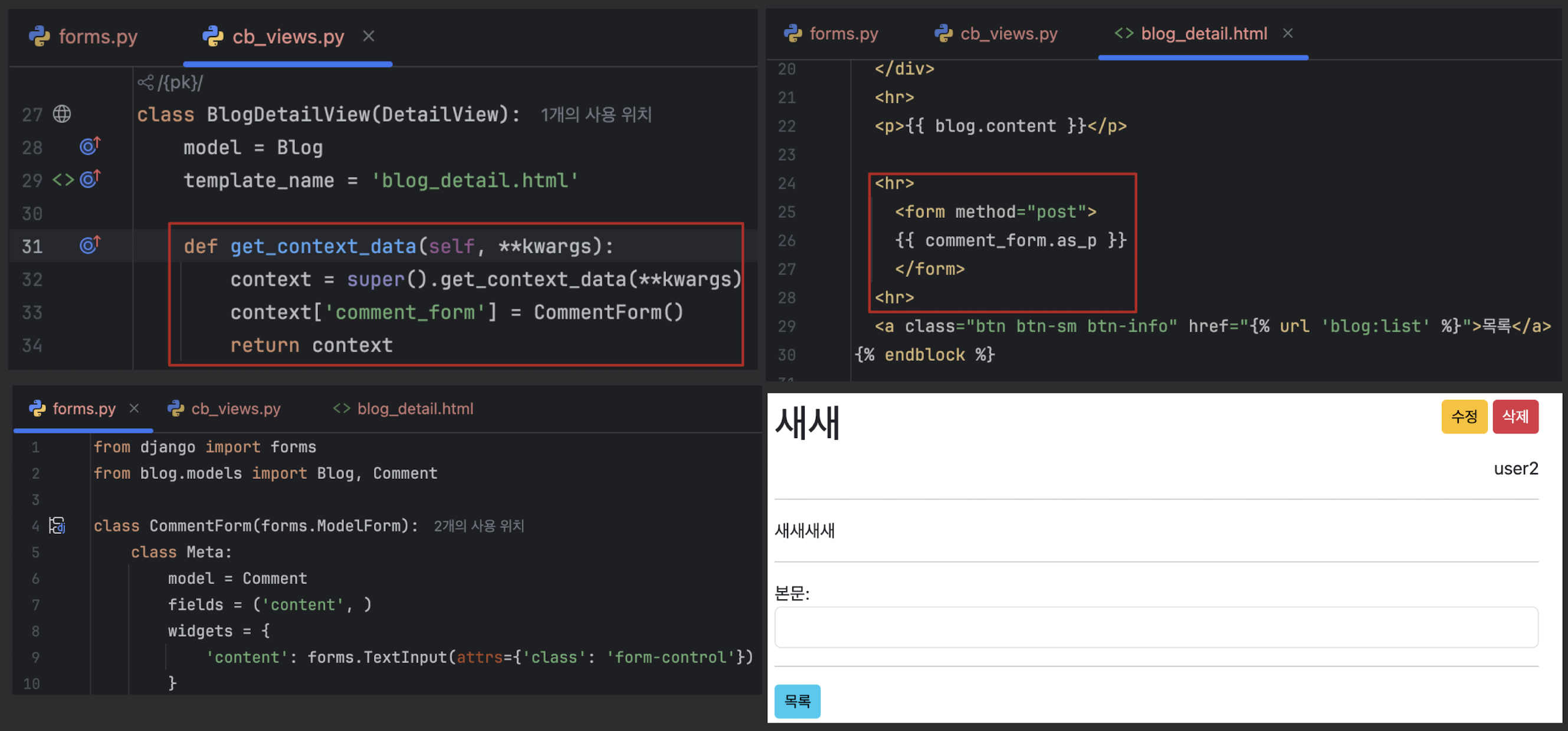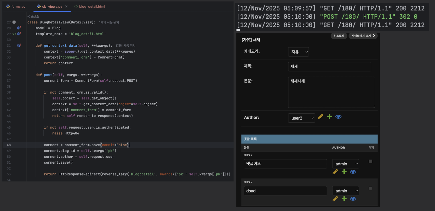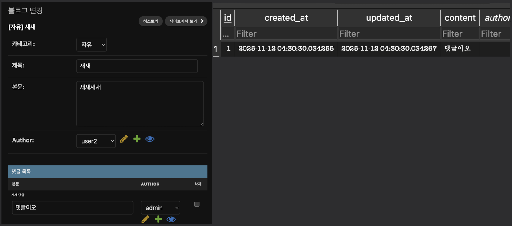- 현재 코드에서는 블로그와 관련된 댓글을 하나의 화면에서 편리하게 관리 가능