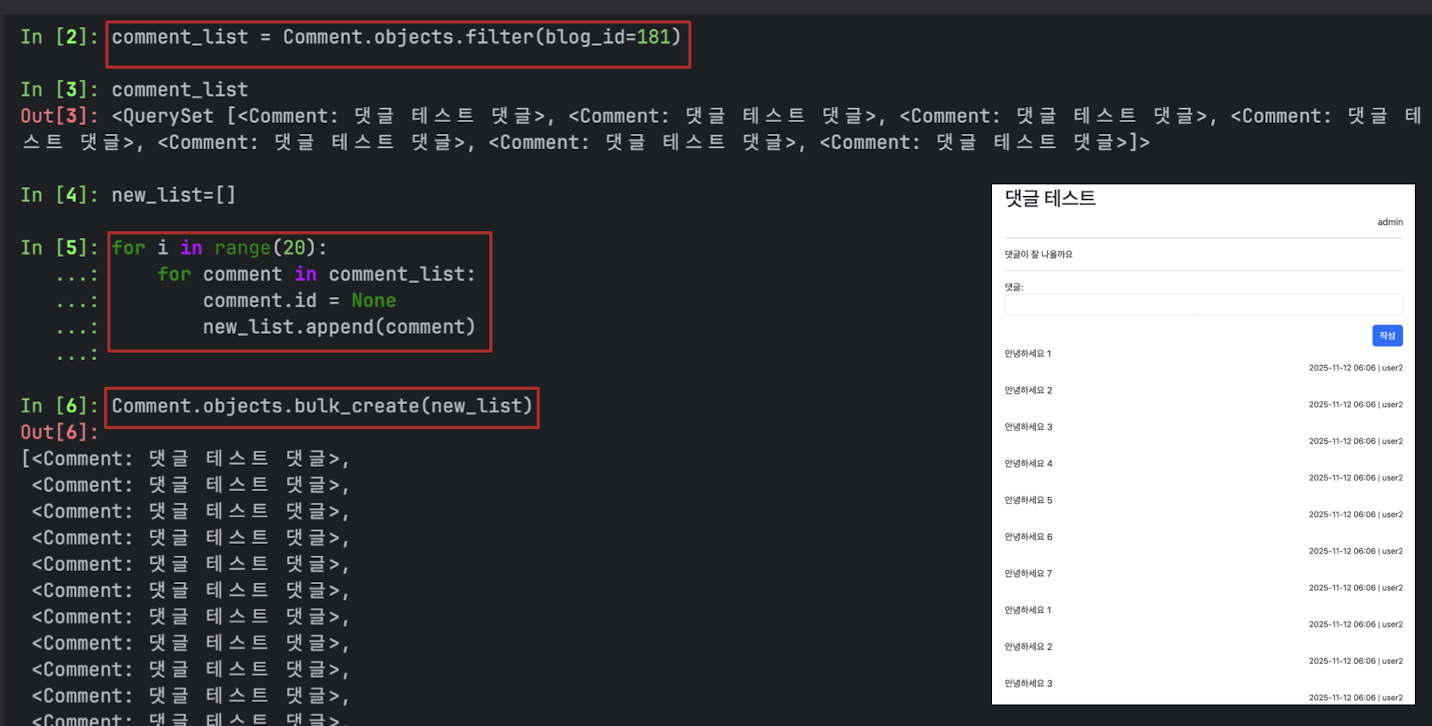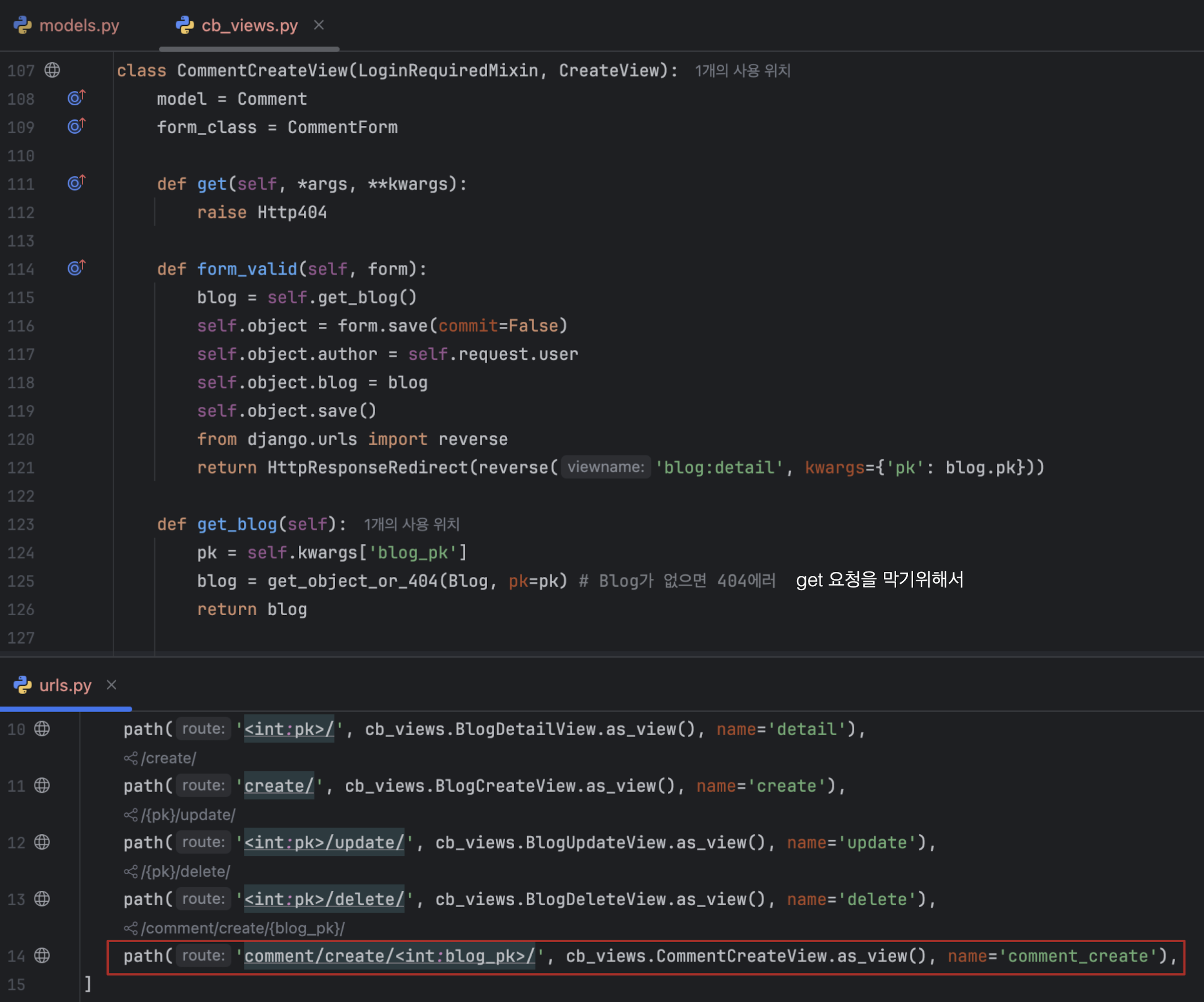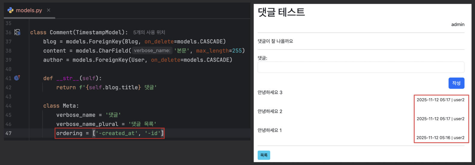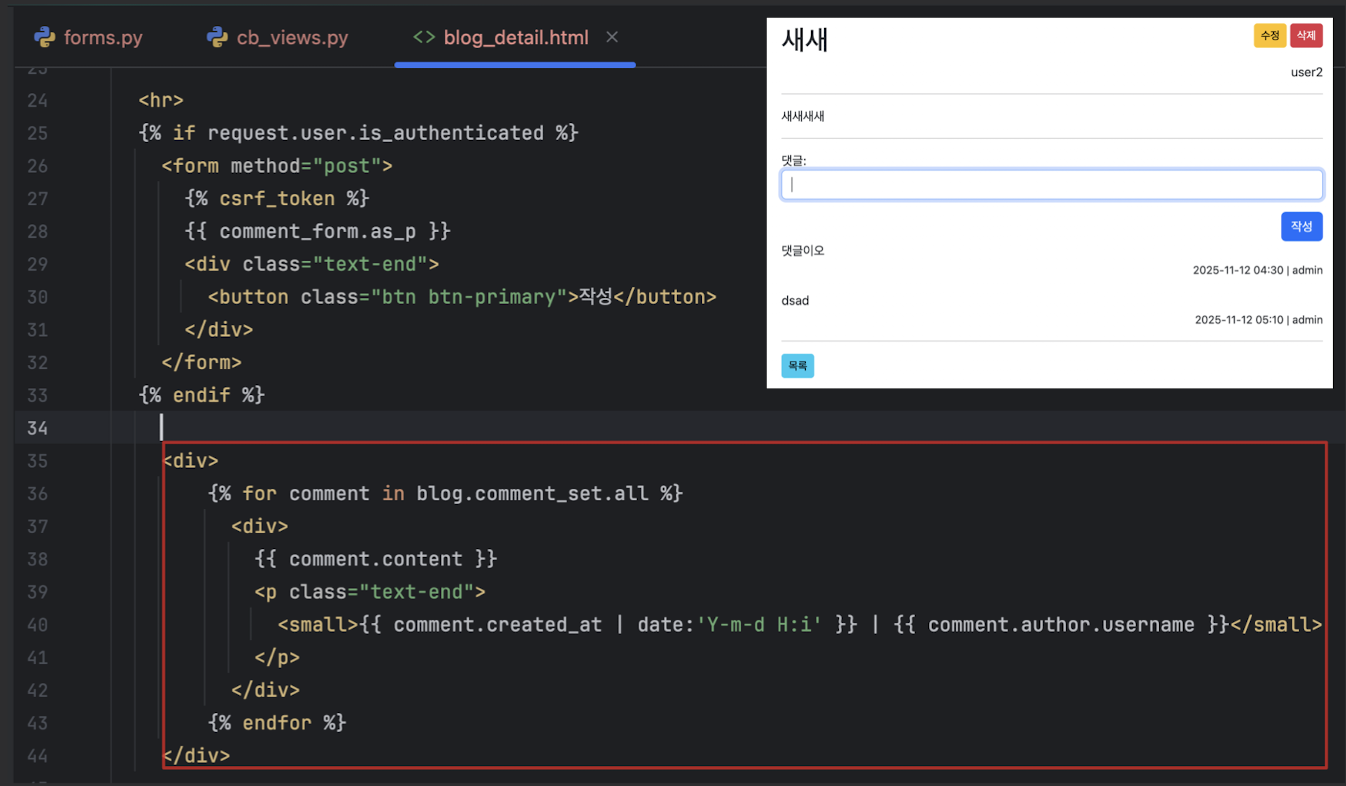 - 현재 코드에서는 블로그와 관련된 댓글을 하나의 화면에서 편리하게 관리 가능