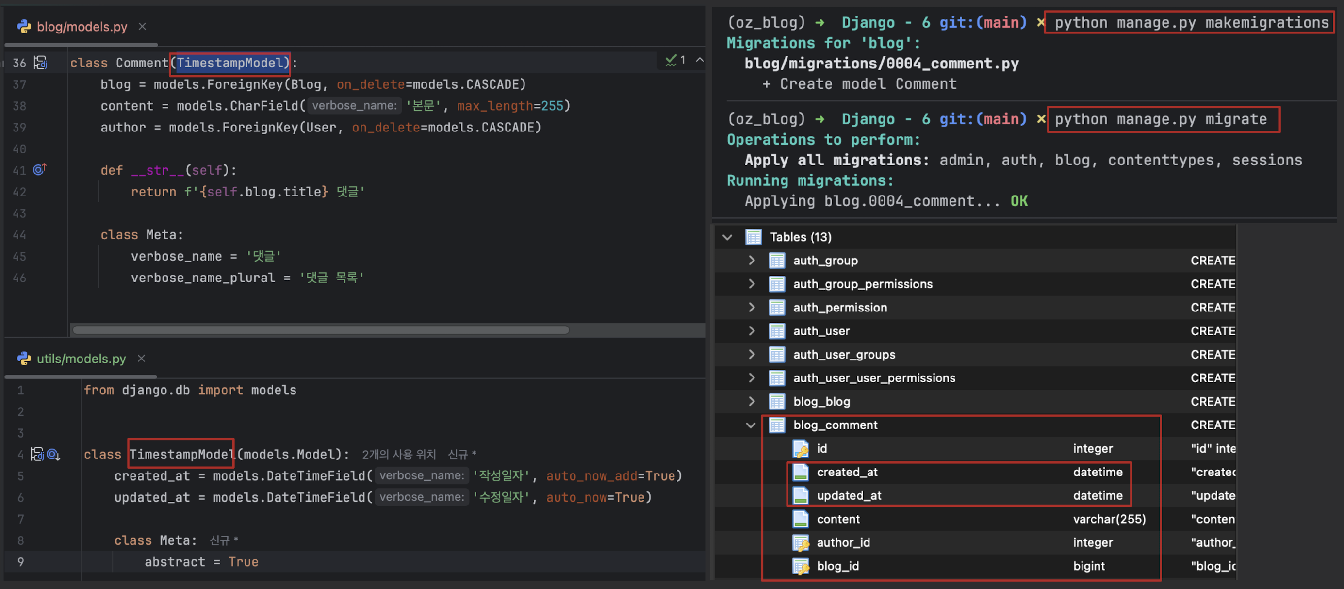 - TimestampModel 은 추상 모델 클래스(abstract model class)