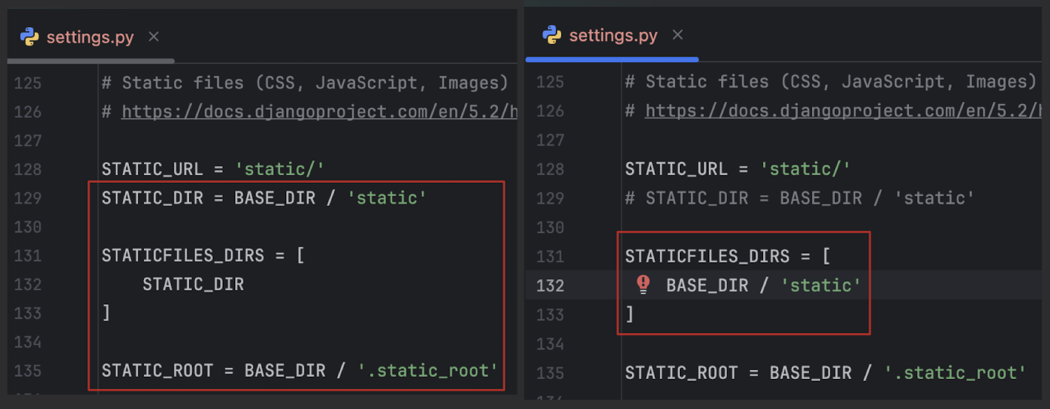 STATIC_DIR = BASE_DIR / 'static' : 그냥 정의하기 위해 사용한 것