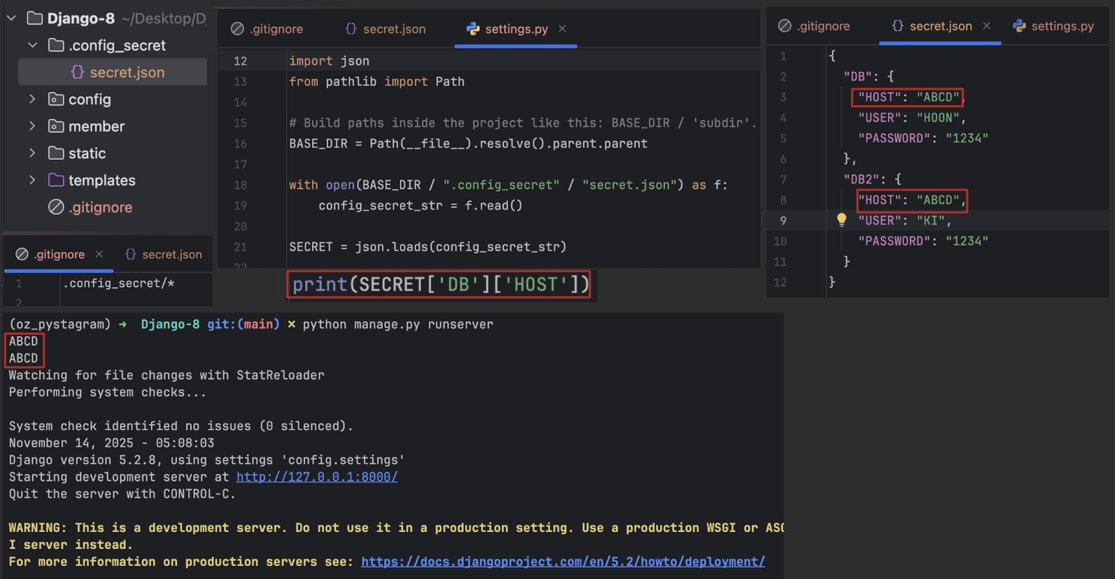 Python Interpreter과 Language & Frameworks > Django 을 설정하여 프로젝트 세팅을 완료