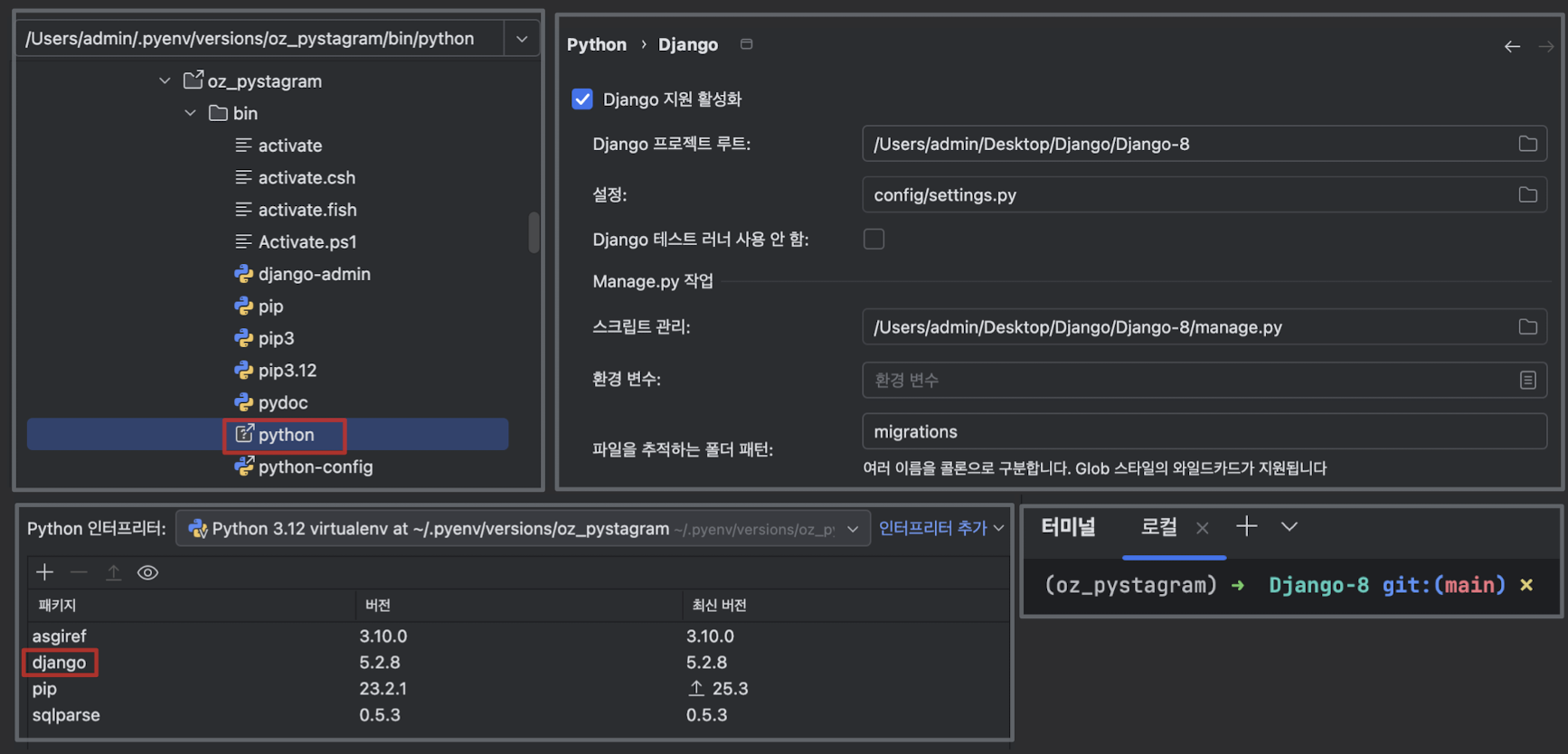 pyenv virtualenv 3.12.1 oz_pystagram : 가상환경 생성