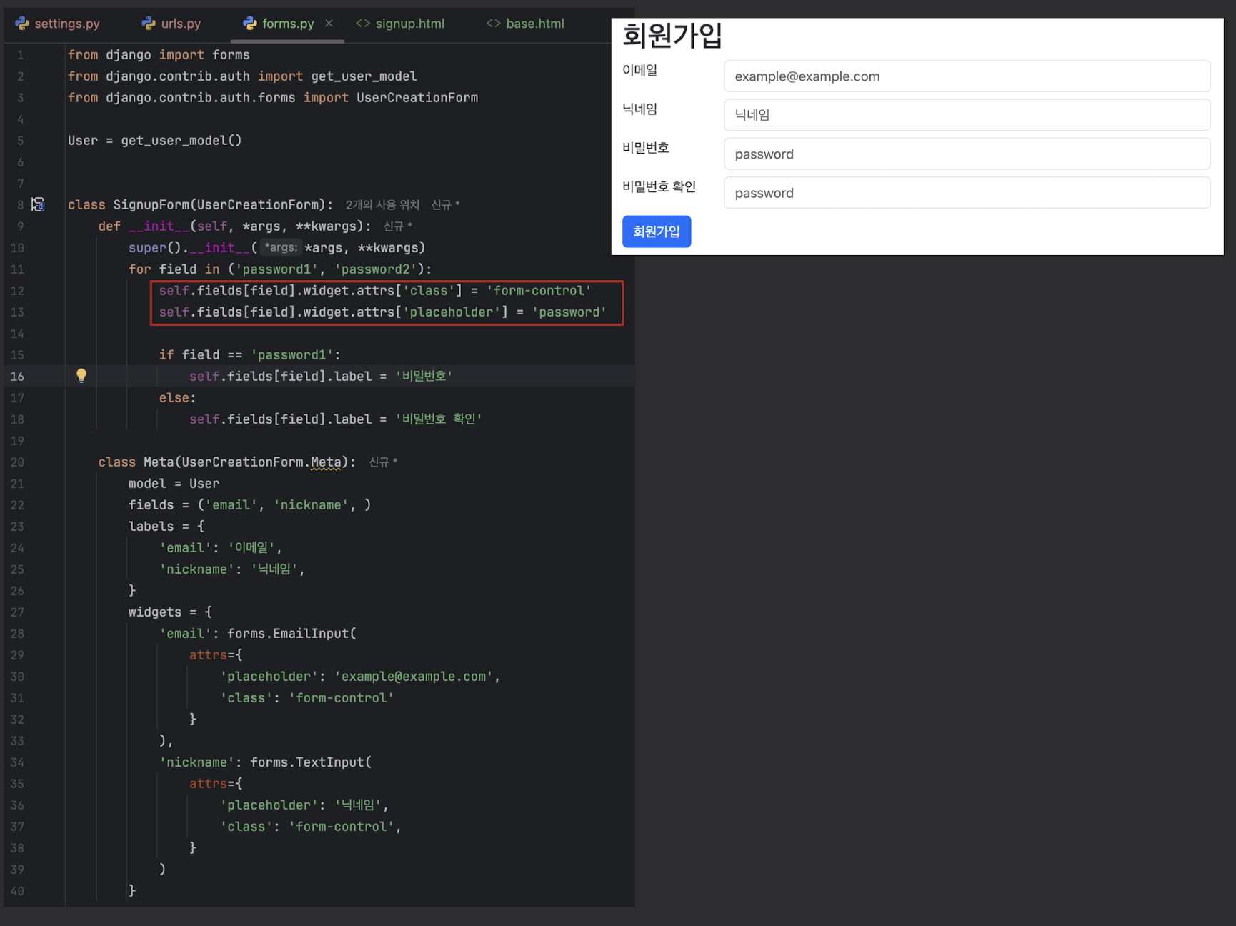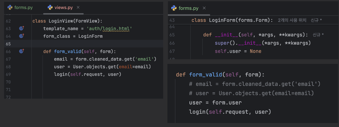 forms.py 에 코드를 추가함으로써 form_valid를 간략하게 줄일 수 있음