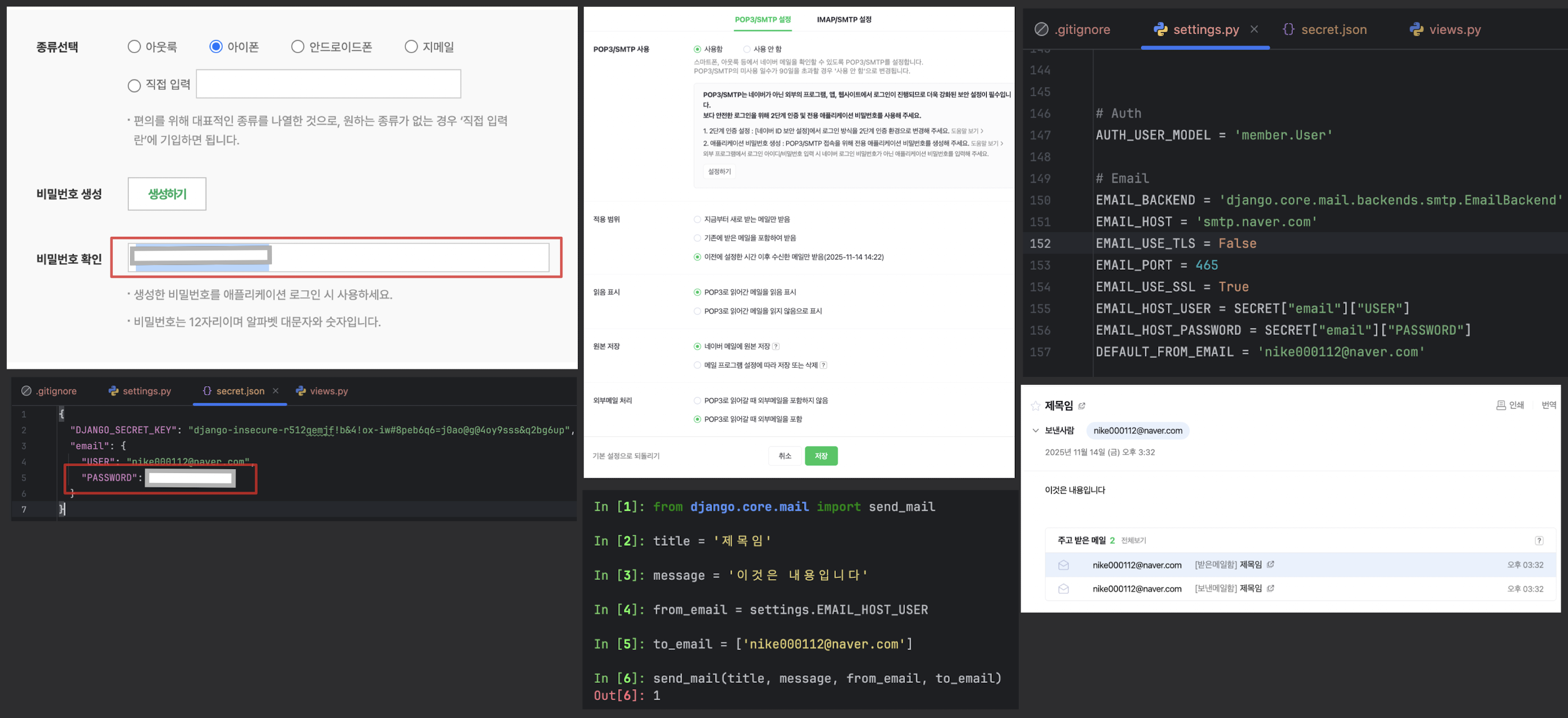 네이버 SMTP는 반드시 “앱 비밀번호(2단계 인증)” 사용해야 함