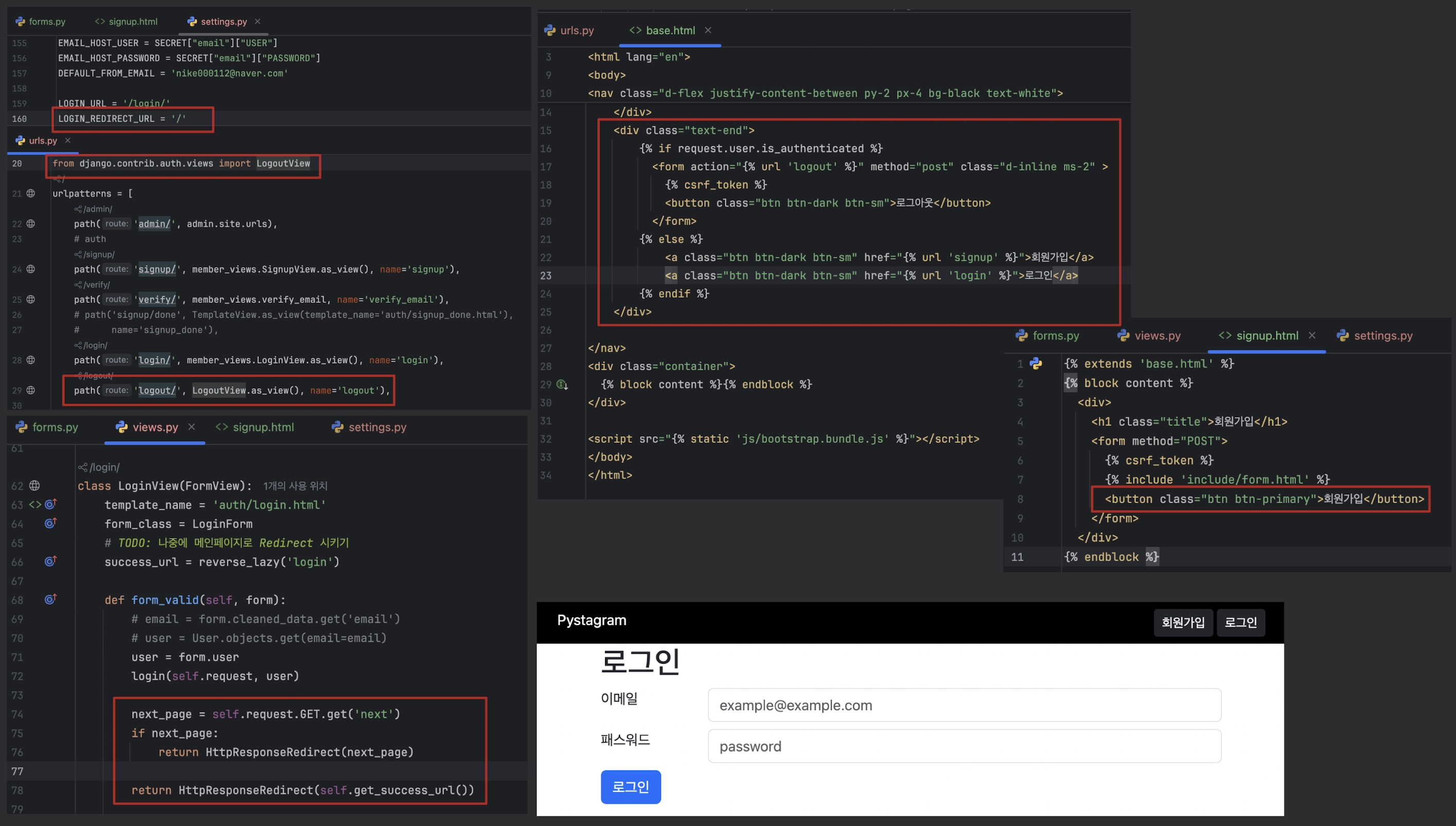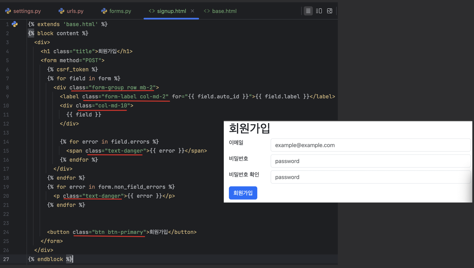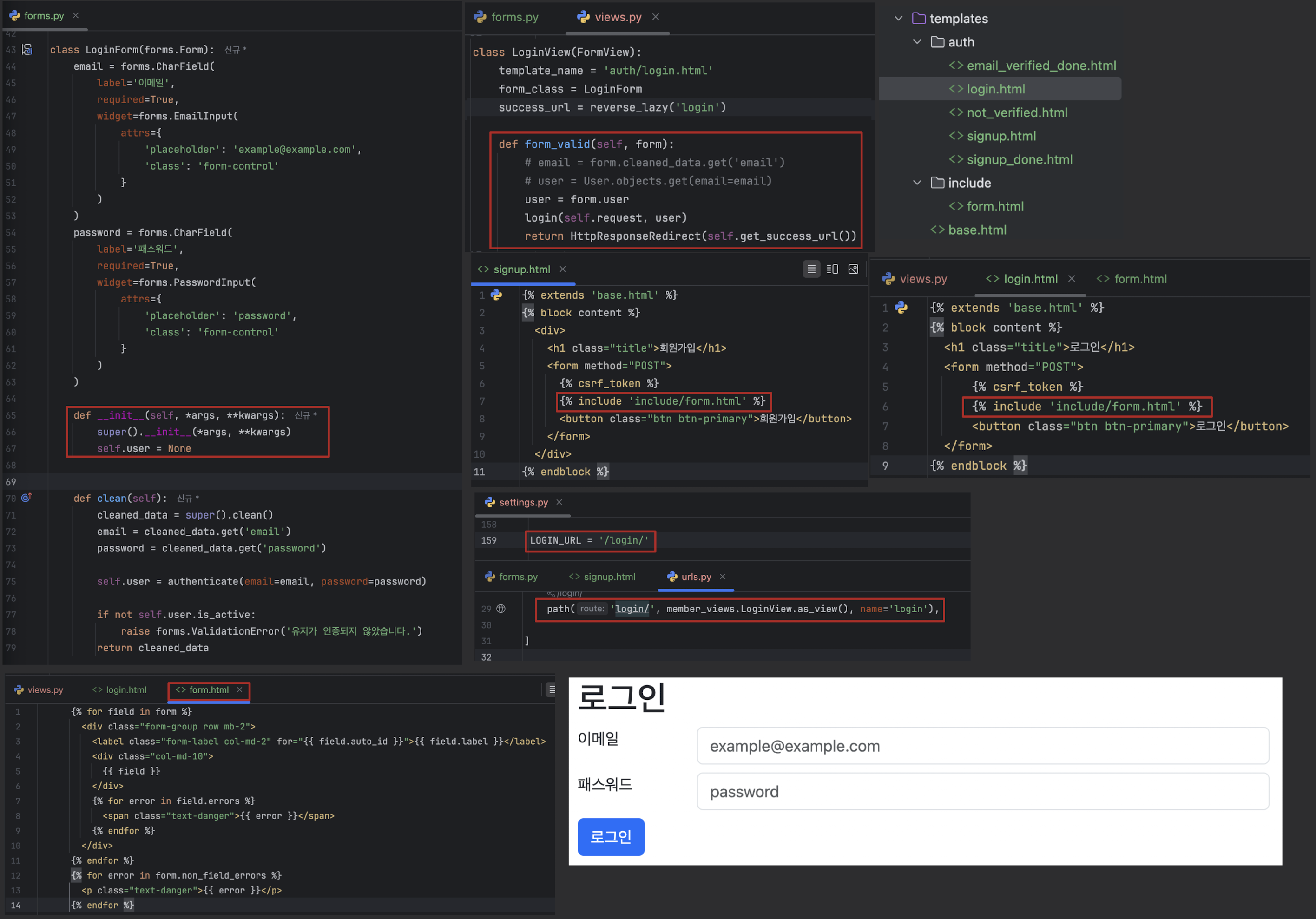 success_url = reverse_lazy('signup_done') 대신 form_valid에서 렌더링