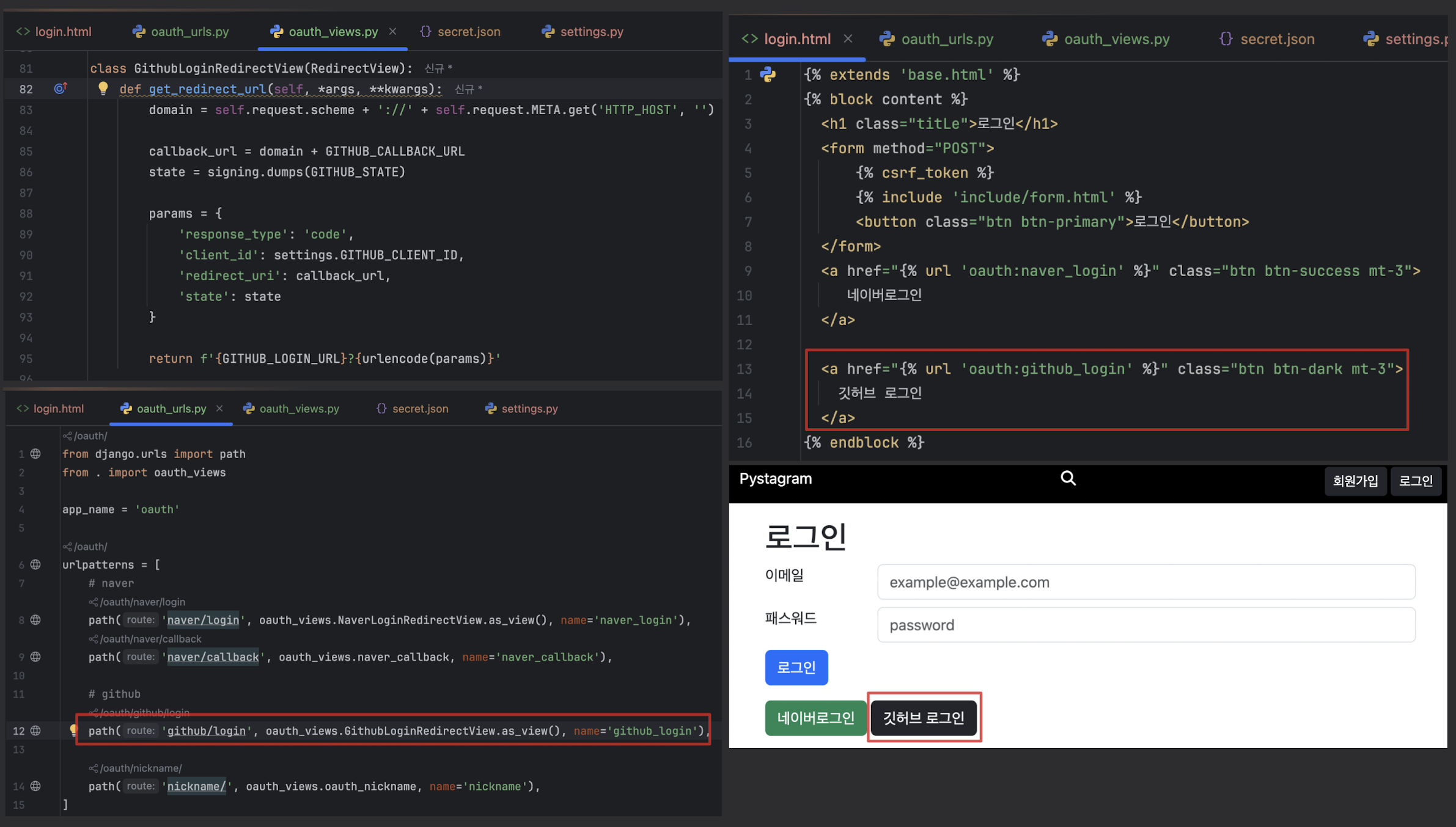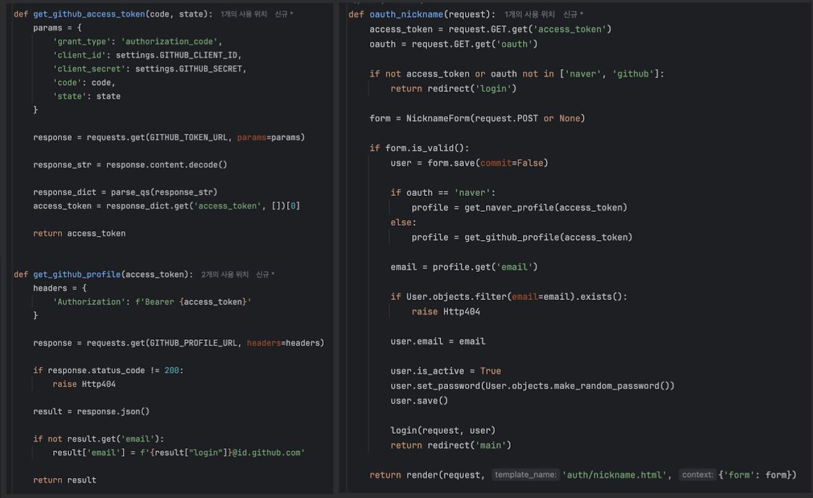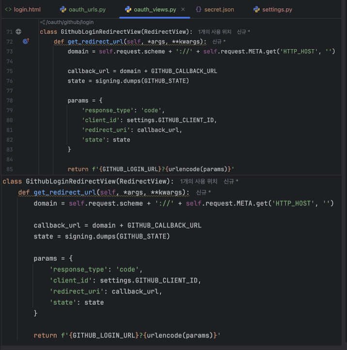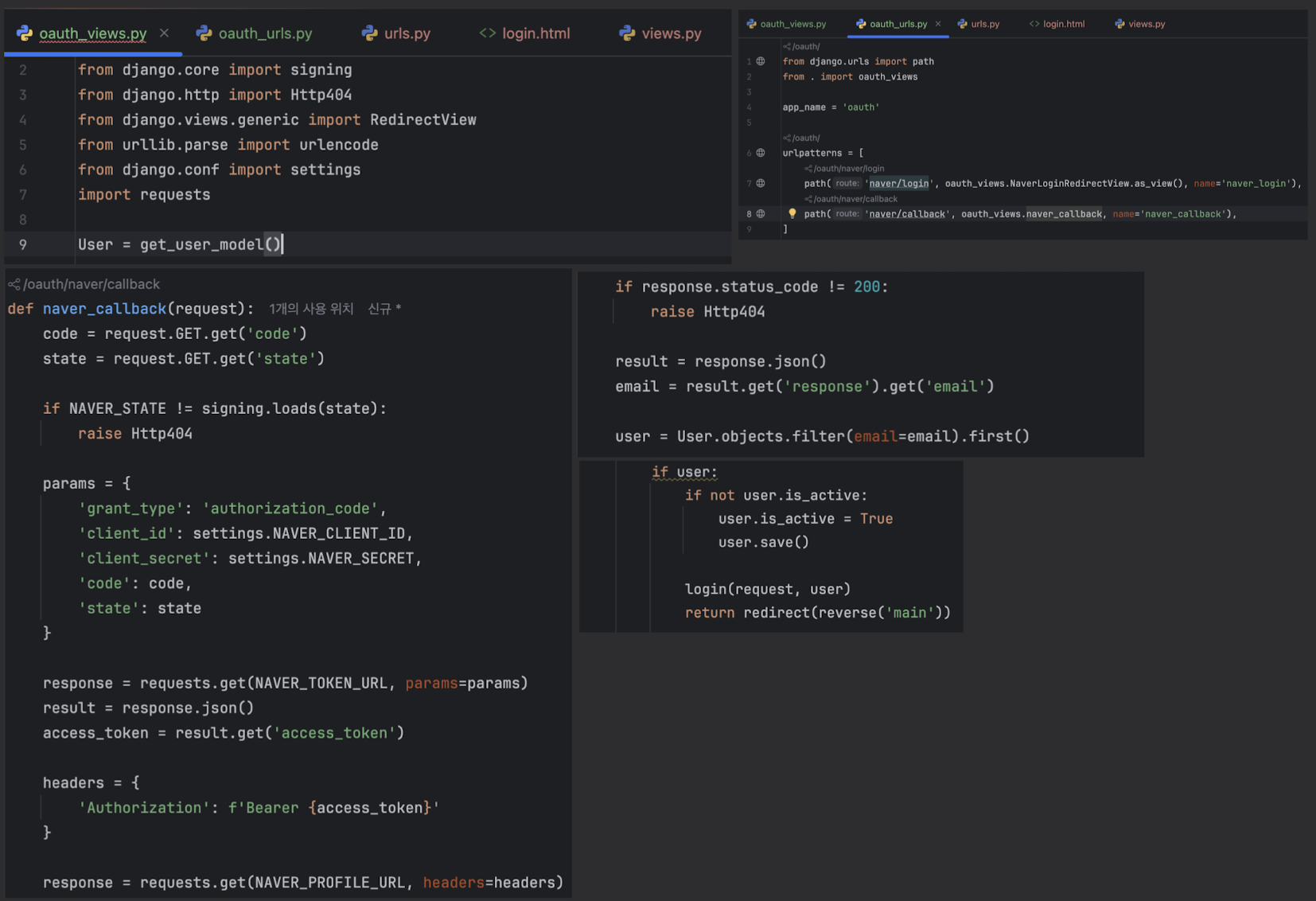 - Django 서버에서 OAuth2서버에서 받은 요청으로 로그인 함
