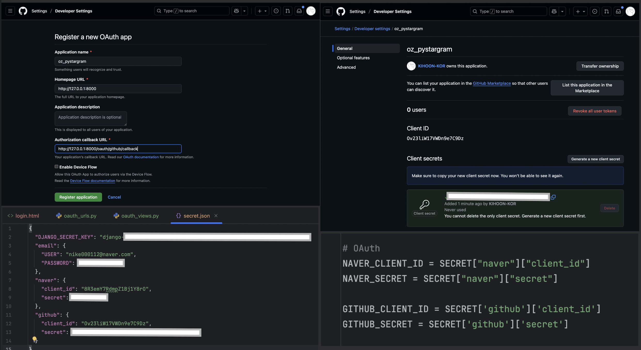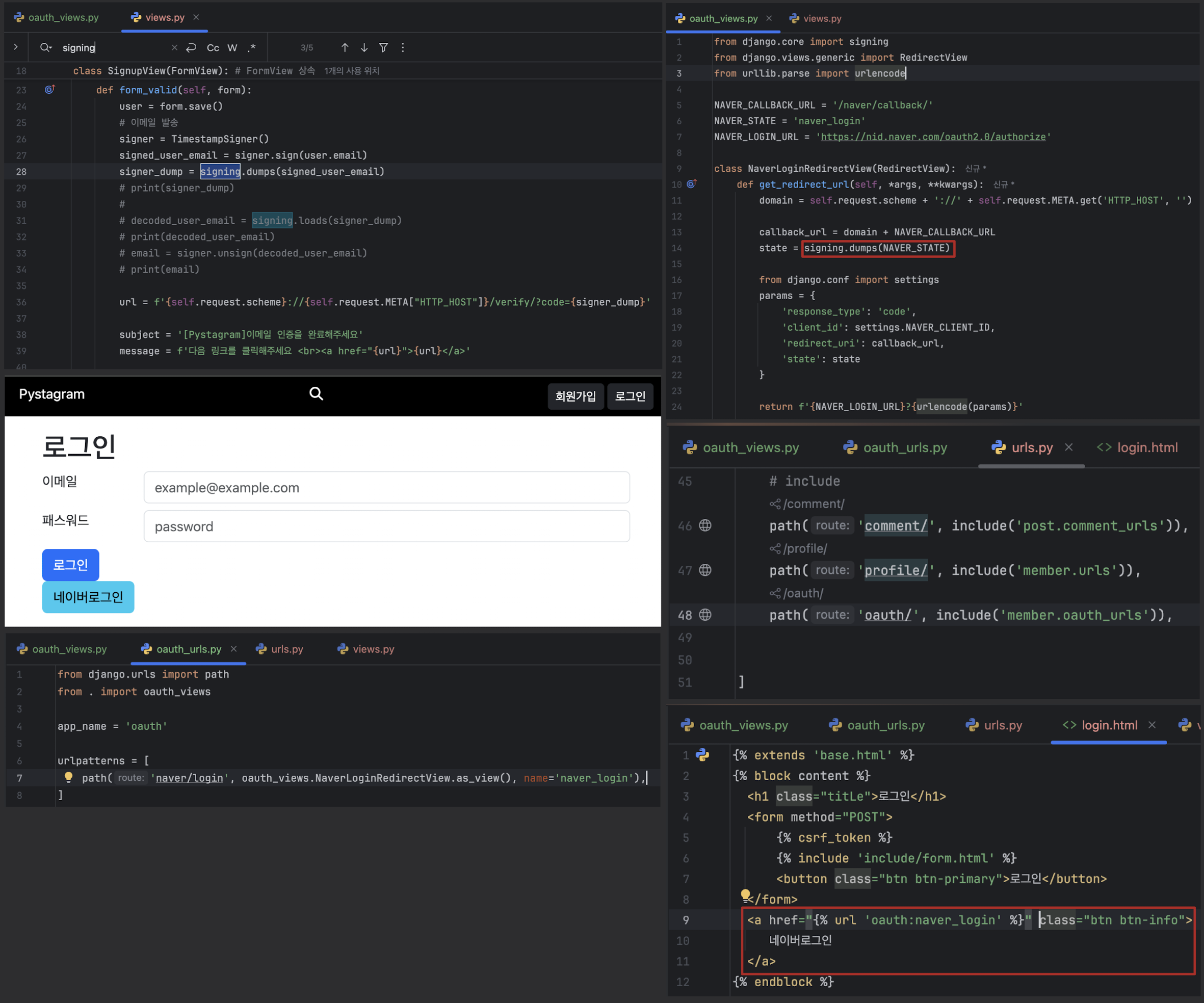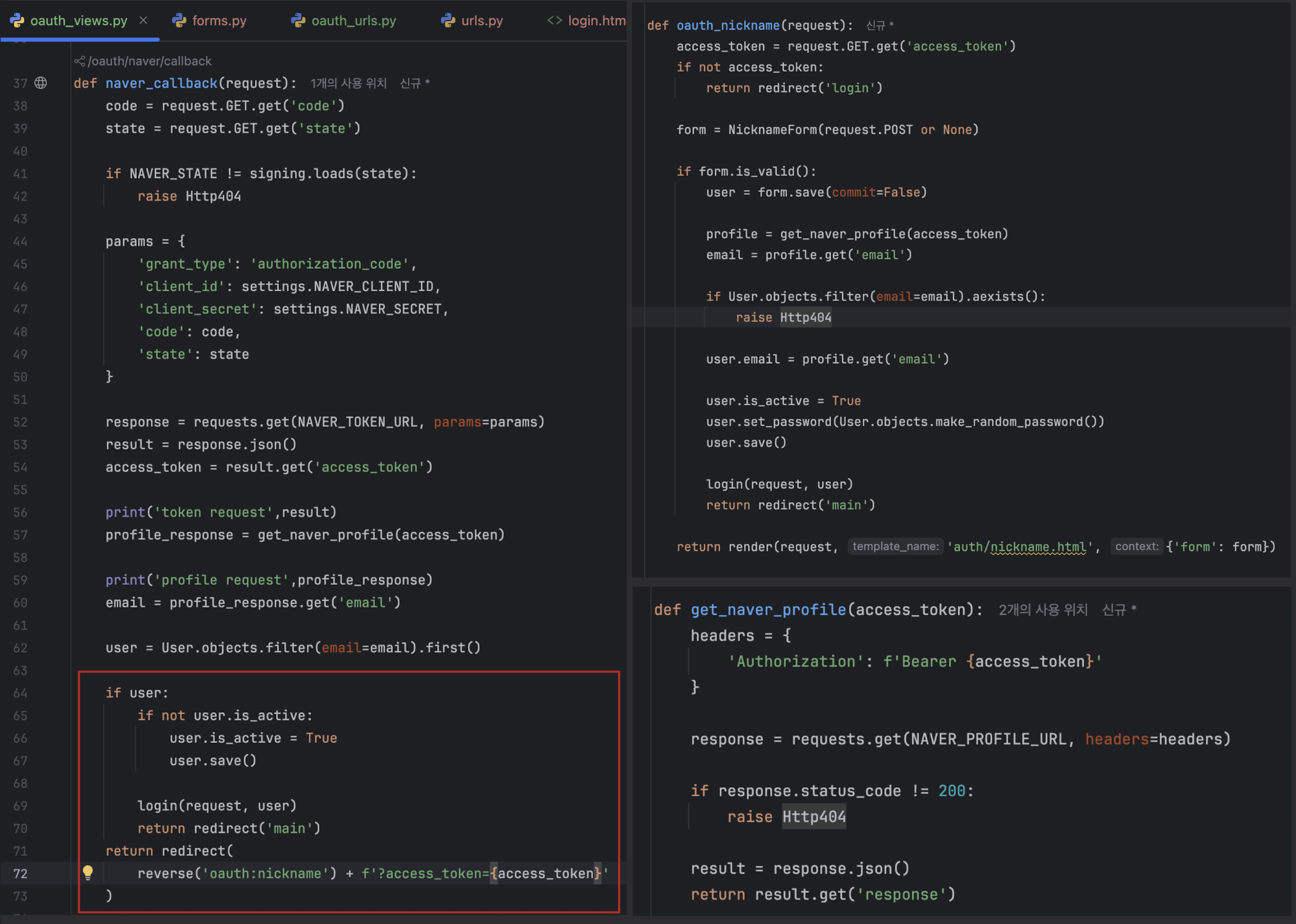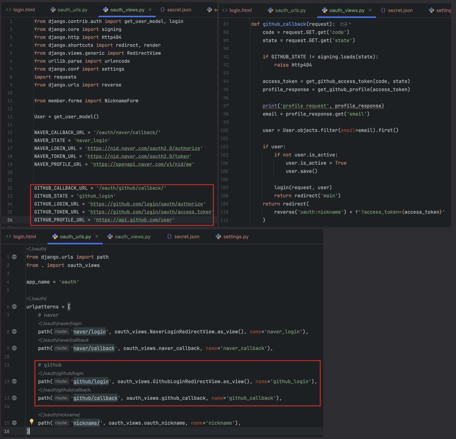 - Django 서버에서 OAuth2서버에서 받은 요청으로 로그인 함