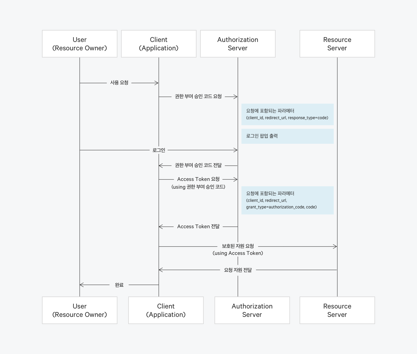 - 리소스 소유자는 클라이언트가 자신의 리소스에 접근할 수 있도록 권한을 부여