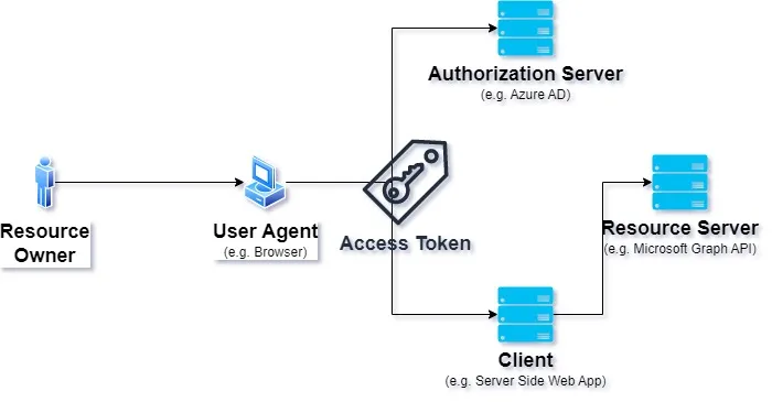 - 클라이언트가 권한 부여 승인 코드를 통해 엑세스 토큰 (및 리프레시 토큰)을 발급받음