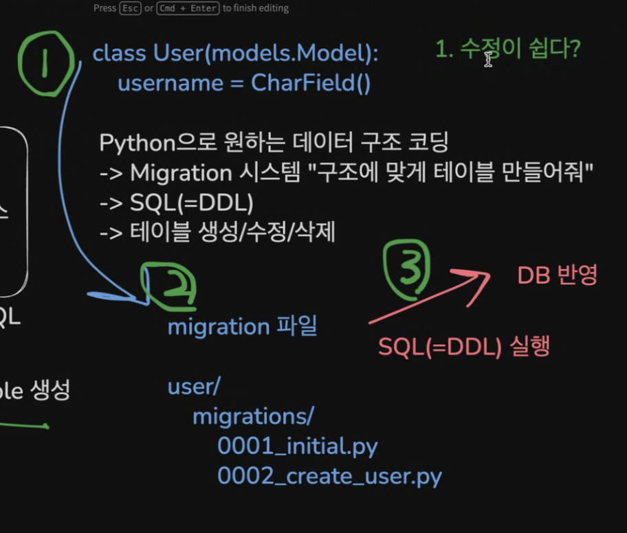 - Migration 시스템 "구조에 맞게 테이블을 만들어줘"