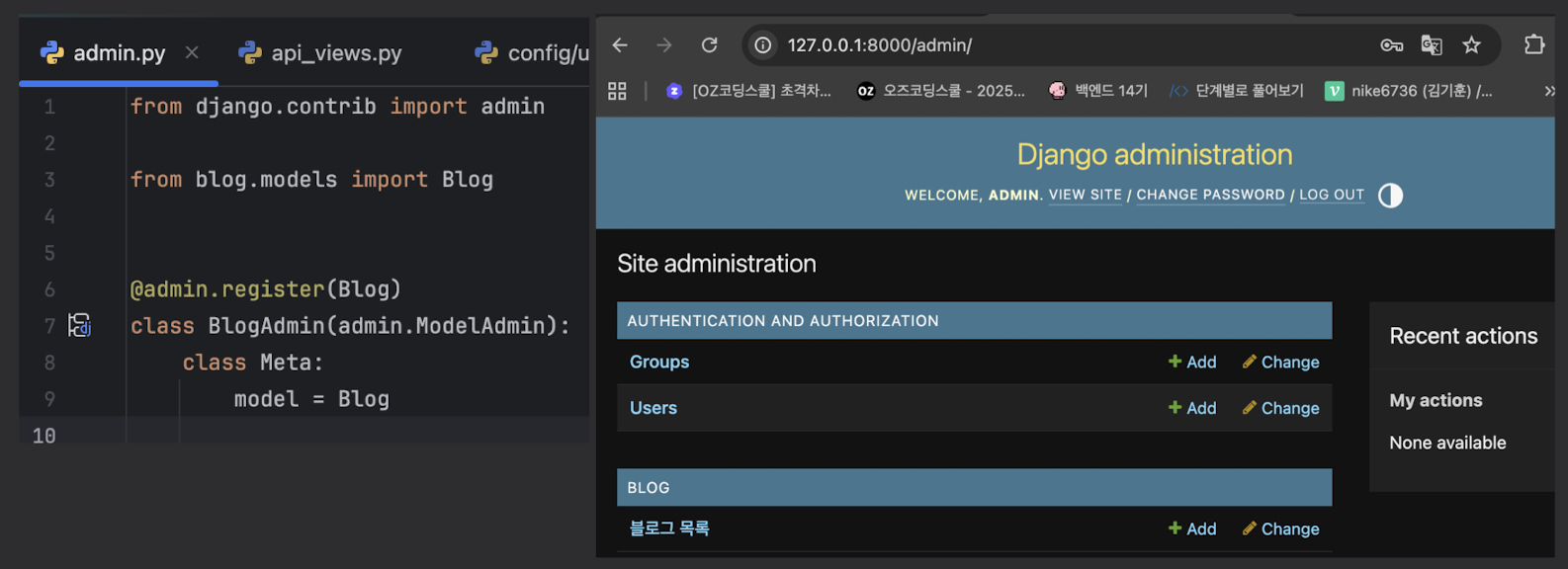 admin페이지 이용 - python manage.py createsuperuser