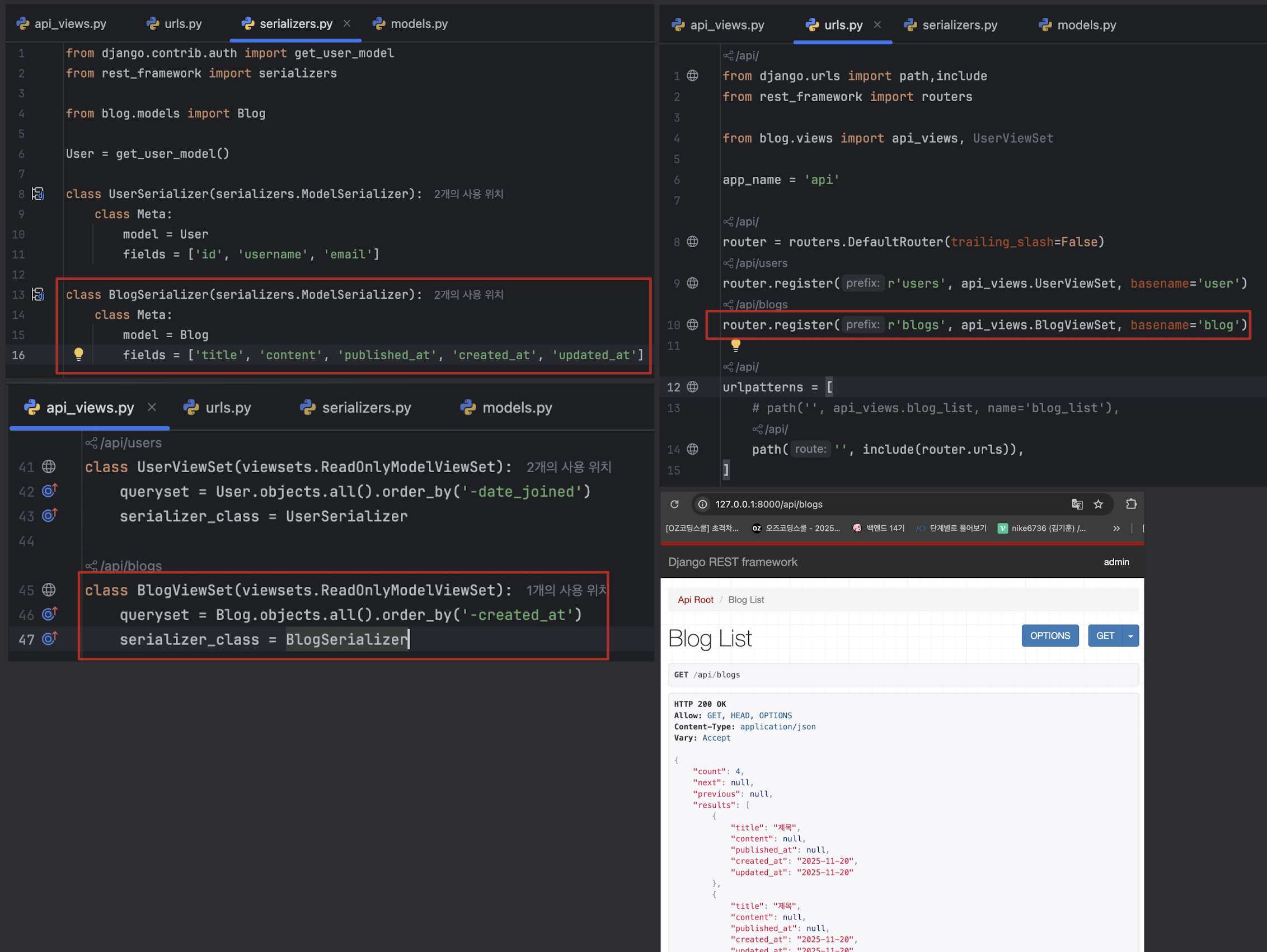 ReadOnlyModelViewSet은 읽기 전용 API를 제공하며, list와 retrieve 작업만 지원from rest_framework import viewsets