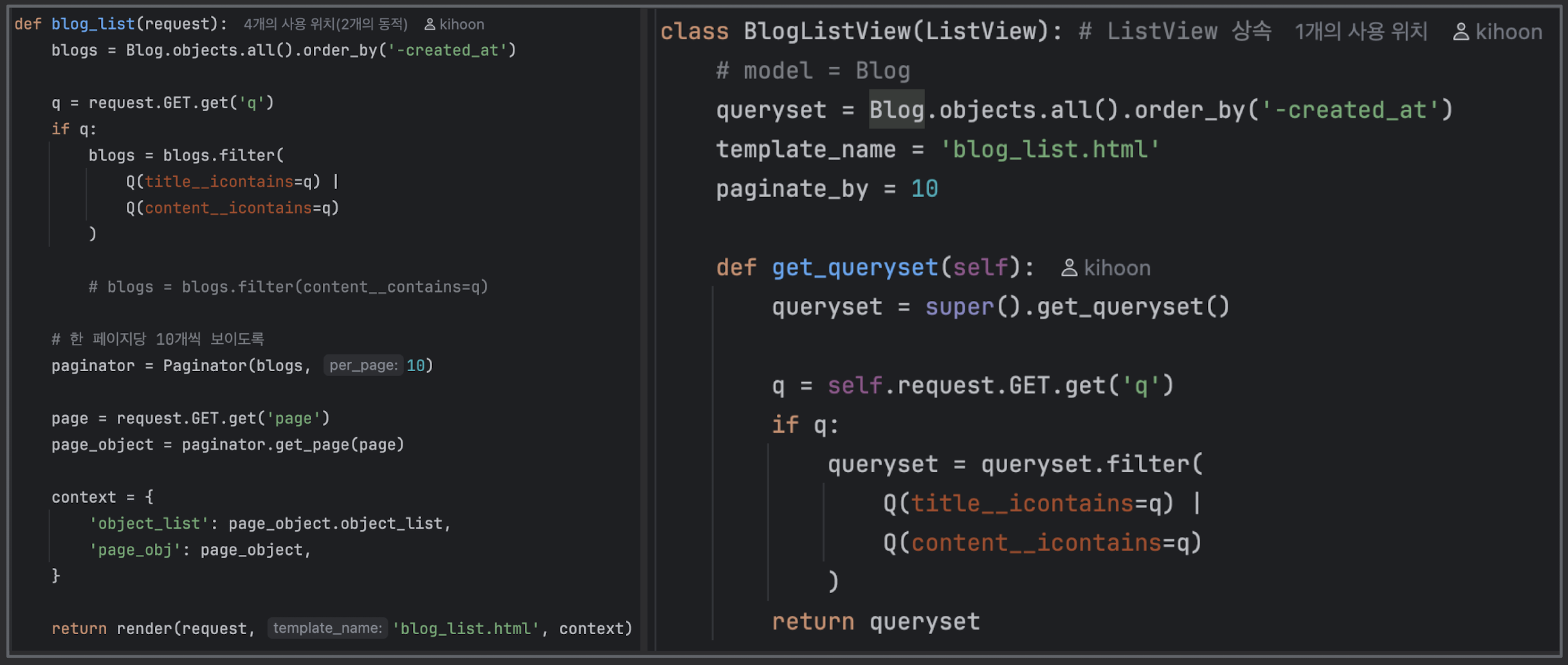 - get_queryset : "어떤 데이터 목록을 가져올지" 직접 제어