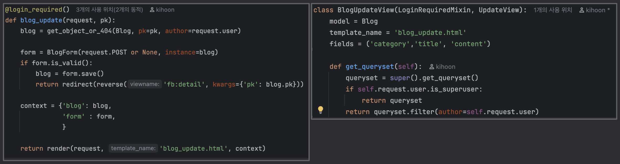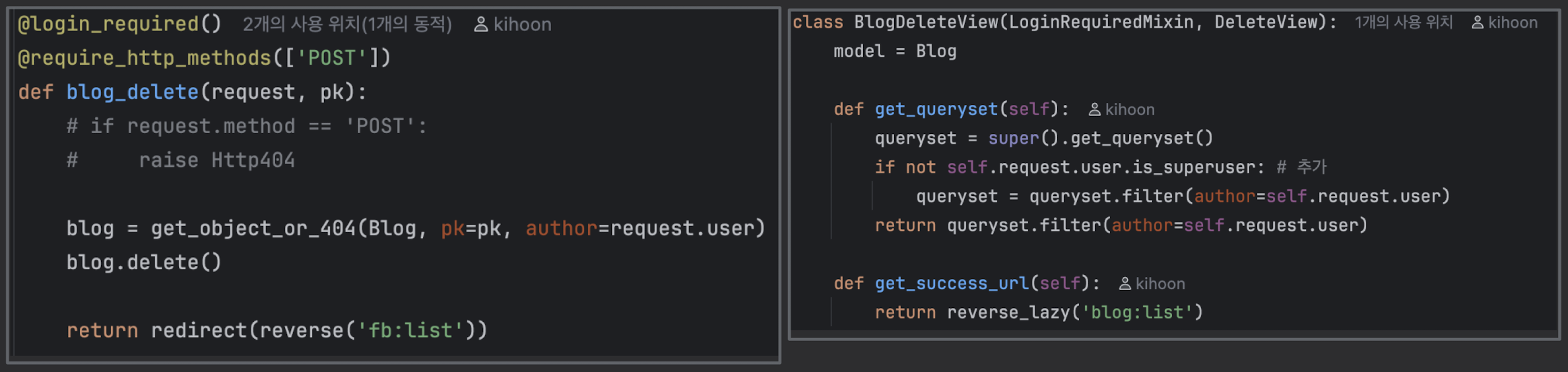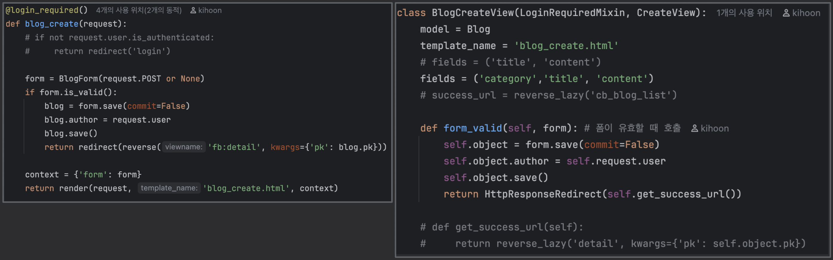 - LoginRequiredMixin을 항상 왼쪽에