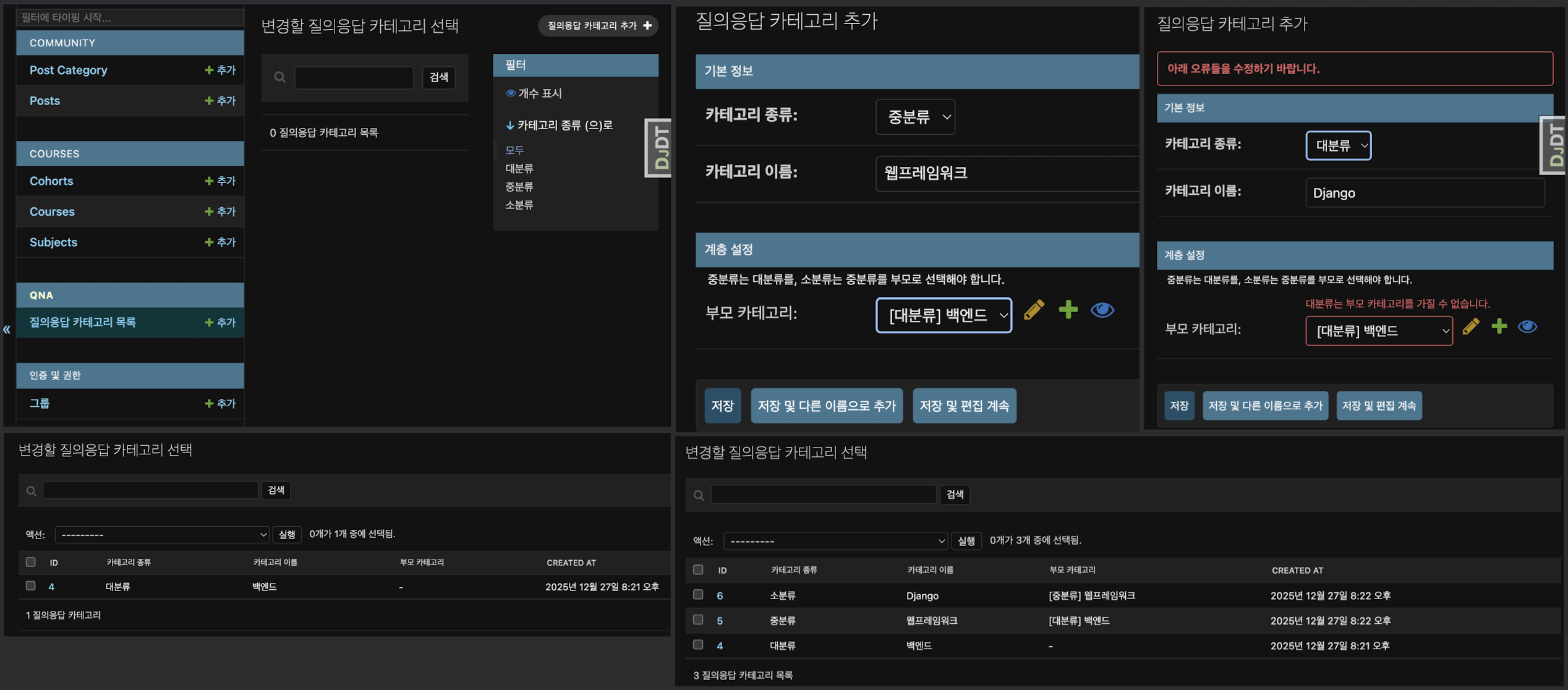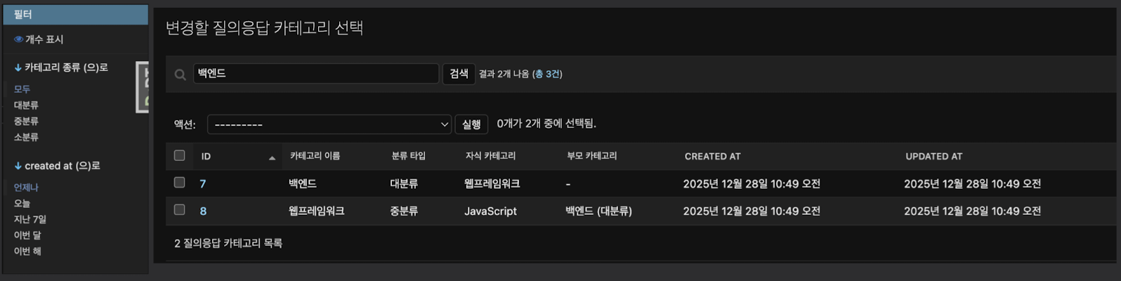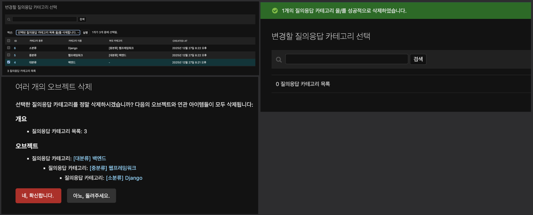 - 카테고리를 삭제하면 연결된 질문들의 카테고리 칸이 자동으로 '일반질문'으로 변경