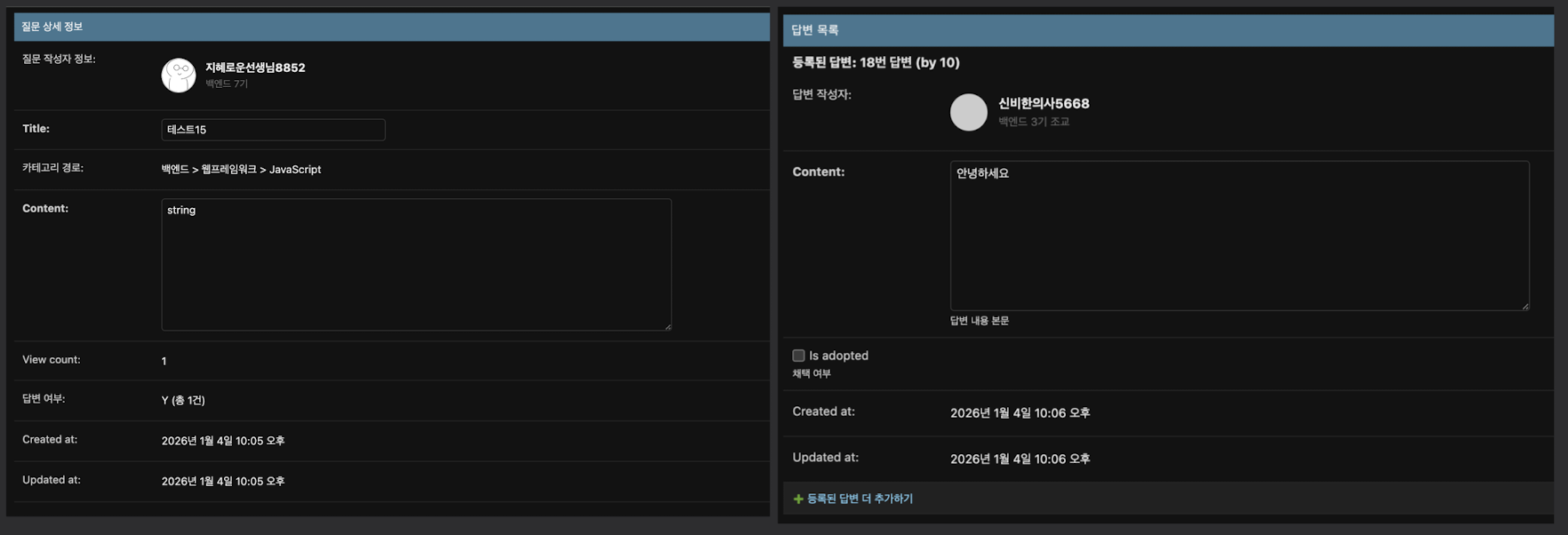 - 하지만 이번 프로젝트를 진행하면서 질문 등록에 대한 기능구현을 완료하고 테스트까지 완료한 후애