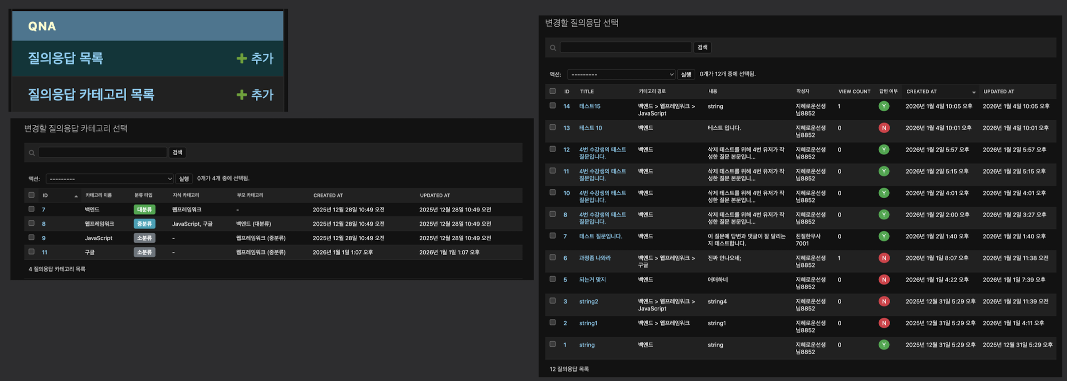 - “커뮤니티 기능 담당 1팀”, “질의응답 기능 담당 2팀”