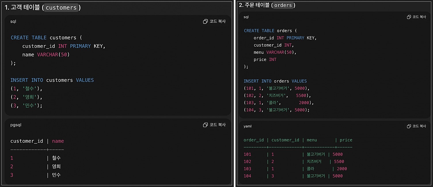 (만약 주문 없는 고객 있었다면 → menu, price = NULL)