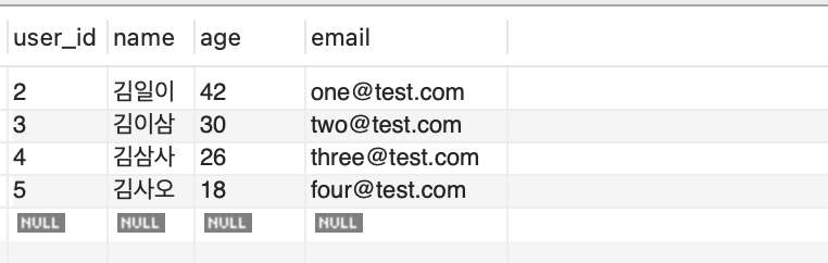 -- user_id = 1 을 다시 삽입하려고 하면 중복이므로 기존 행 삭제 후 새 행 삽입
