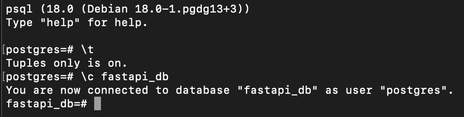 poetry add fastapi uvicorn tortoise-orm aerich python-dotenvDB_URL=postgres://admin:1234@localhost:5432/fastapi_db# app/core/config.py