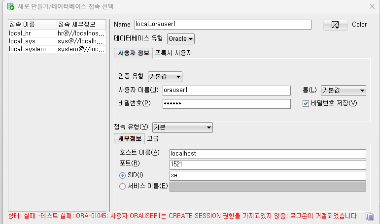 --> 왜? 오라클 서버에 접속할 수 있는 권한이 없어서